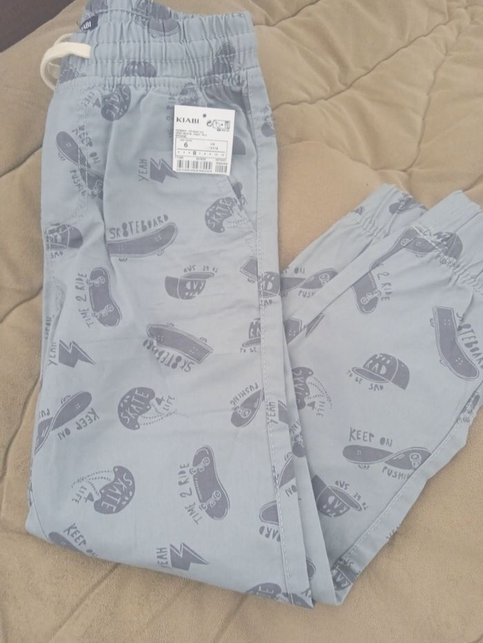 jolie pantalon taille élastique et bas de jambe élastique 💯 coton 2 poches latérales 2 poches arrière fermer scratch 114-119 cm ( 6 ans)