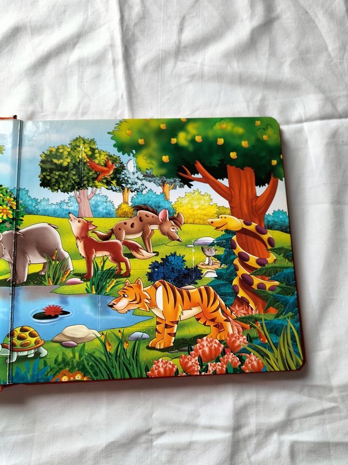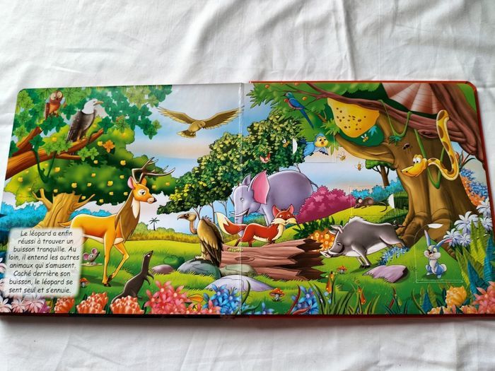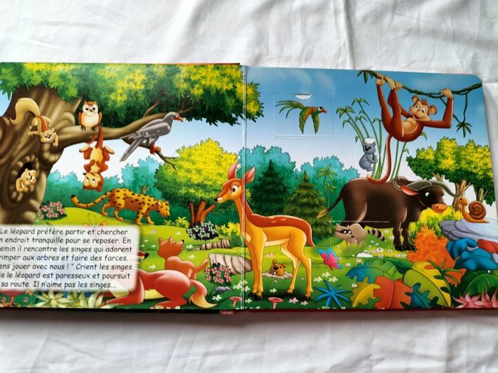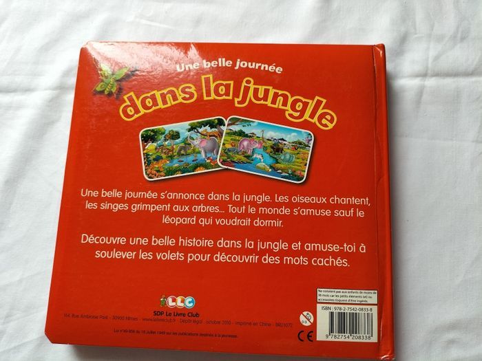 Une belle journée dans la jungle Pages cartonnés avec des volets a soulever Un volet est un peu abîmé mais pas déchiré