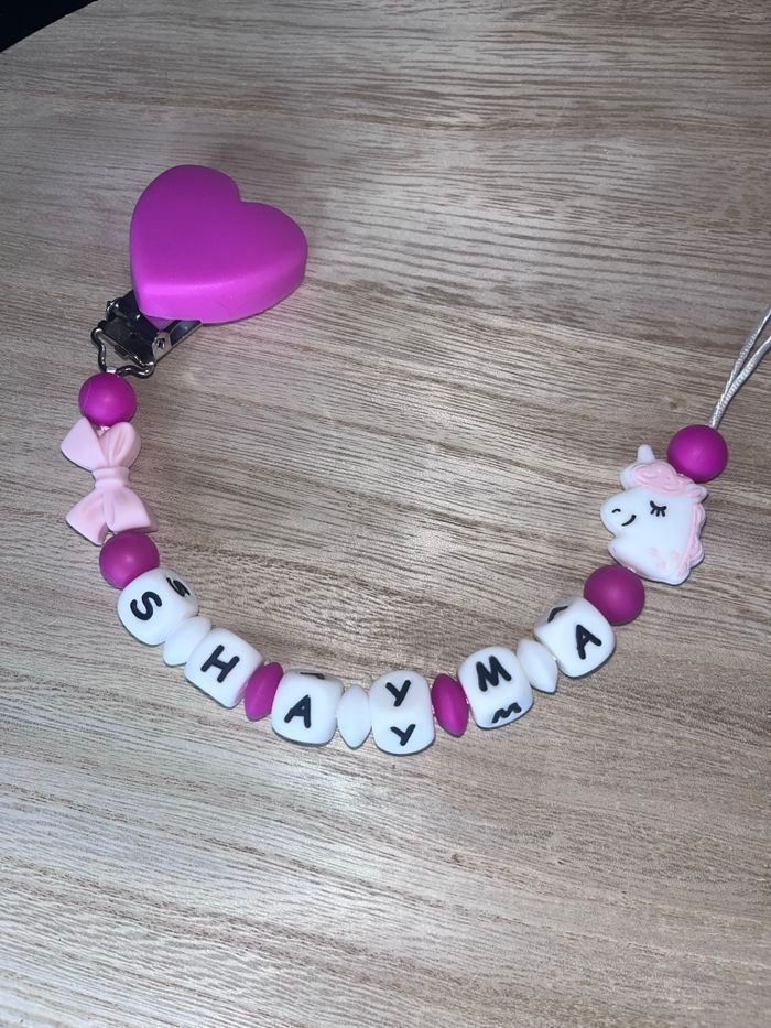 Attache tétine personnalisé en silicone ou en bois au souhait de l’acheteur . Personnalisable au choix de l’acheteur que ce soit la couleur comme le prénom ou le thème . Le fil est doublé pour plus de sécurité tout le long de l’attache tétine. N’hésitez pas à me demander et regarder mon dressing. Une photo vous sera envoyée avant l’expédition pour vous ayez un aperçu du rendu. Tous les produits sont réalisés avec du materiel spécial conçu aux bébés , enfants.