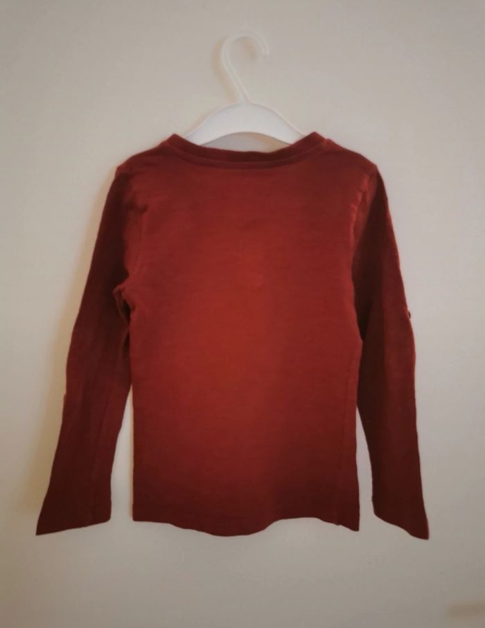 T-shirt manches longues Bordeaux Tex. Col Tunisien. Très bon état. Taille 3/4 ans. ✅Réductions en cas de lot dans mon dressing