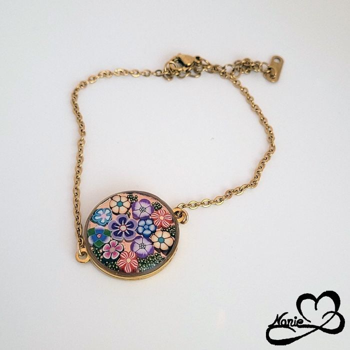 Bracelet doré rond à fleurs en pâte Fimo - photo numéro 1