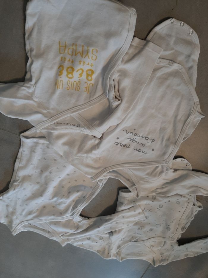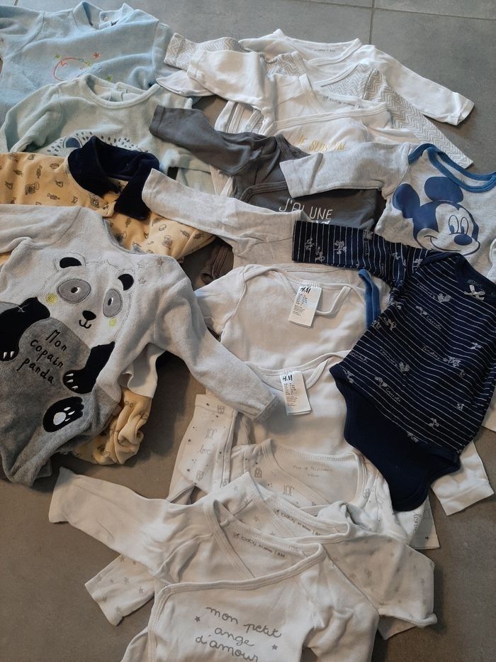 Lot d'habits taille 6 mois bon état 4 pyjamas chauds + 12 bodies manches longues Divers marques : gemo, h&m