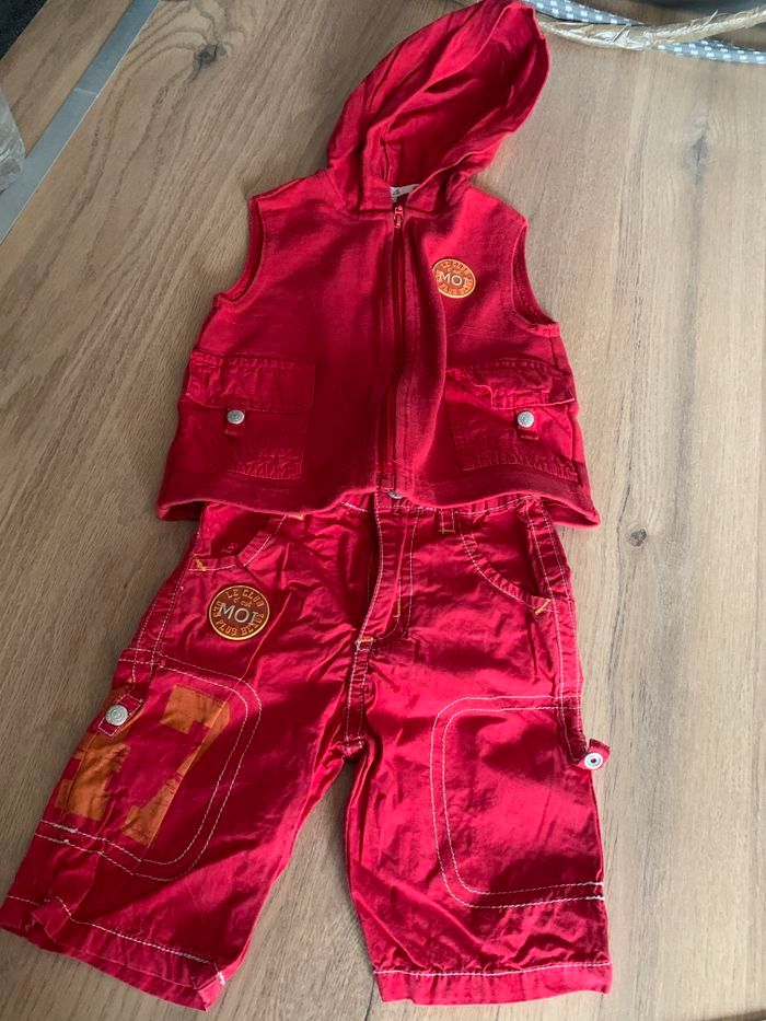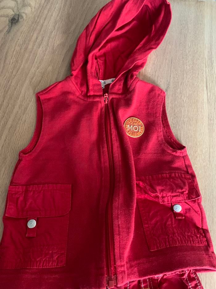 Ensemble bébé 3 mois veste capuche sans manche pantalon rouge La Compagnie des Petits