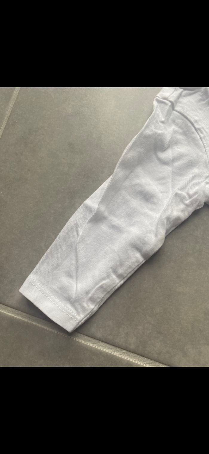 Tout neuf. J'en ai plusieurs dans mon dressing. Matière très agréable. Coton organic. N’hésitez pas à me suivre car encore beaucoup de vêtements fille, des chaussures en cuir, des chaussons… (du 1 mois au 8 ans), des vêtements garçon (du 1 au 12 mois pour le moment ). Maison non-fumeurs et sans animaux même si je les adore. Il n'y aura pas de poils ou d'odeur désagréable. Vous recherchez quelques choses, demandez moi. Je réponds très rapidement. Bon shopping 😊.