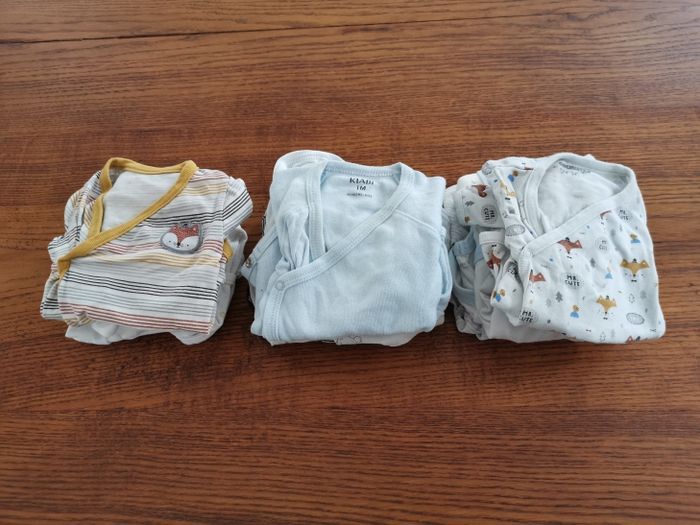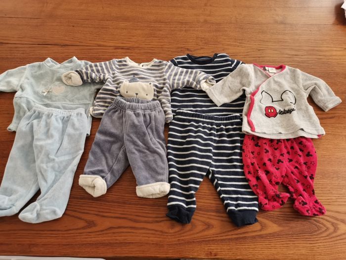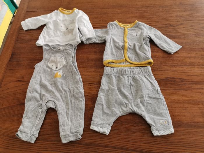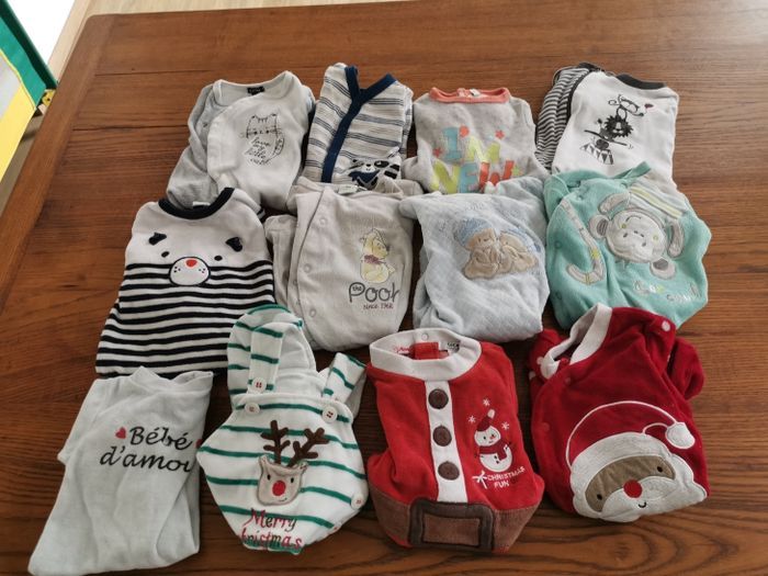 Gros lot vêtements 1-3 mois Garçon : - 4 Pijamas 2 pièces chaud. - 1 manteau - 1 veste en laine chaude - 1 gigoteuse naissance chaude + 1 offerte. - 5 gilets de laine. - 3 pijamas 1 pièce léger. - 12 pijamas 1 pièce chaud. ( dont 3 de Noël). - 3 pijamas 2 pièces léger. - 2 tenues " renard". - 3 tenues " salopettes". - 1 gilet et son polo vert. - 8 bonnets. - 1 pull en laine sans manche gris. - 3 pantalons. - 1 paire de chaussons lapin. - 12 body manches longues. Vêtements d'occasion mais en bon état. Possibilité de prendre à l'unité et de négocier 😊 Lot vendu avec des petits cadeaux 🎁