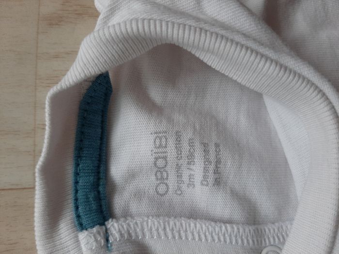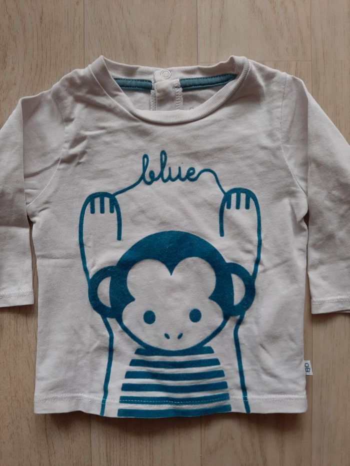 Très beau tee shirt blanc de chez Obaibi A motif bleu en relief velours Taille 3 mois / 59 cm 100% Coton