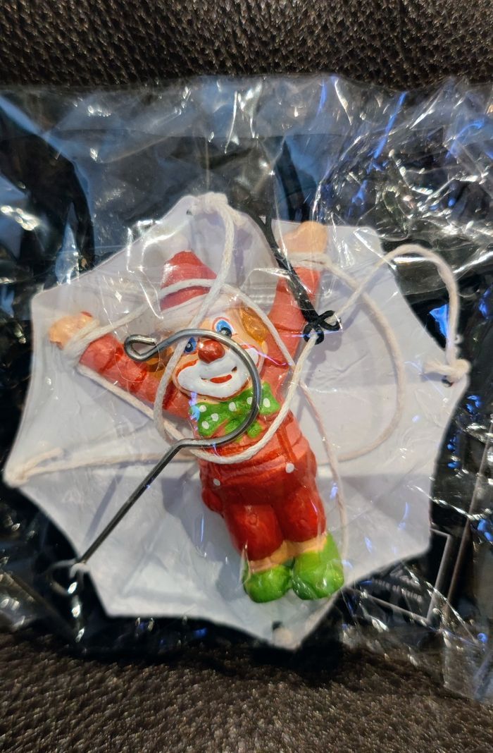 Vends deux belles figurines décoratives " petits clowns" à suspendre. État neuf et dans leurs emballages d'origine avec leurs étiquettes. Prix : 15€ les 2.