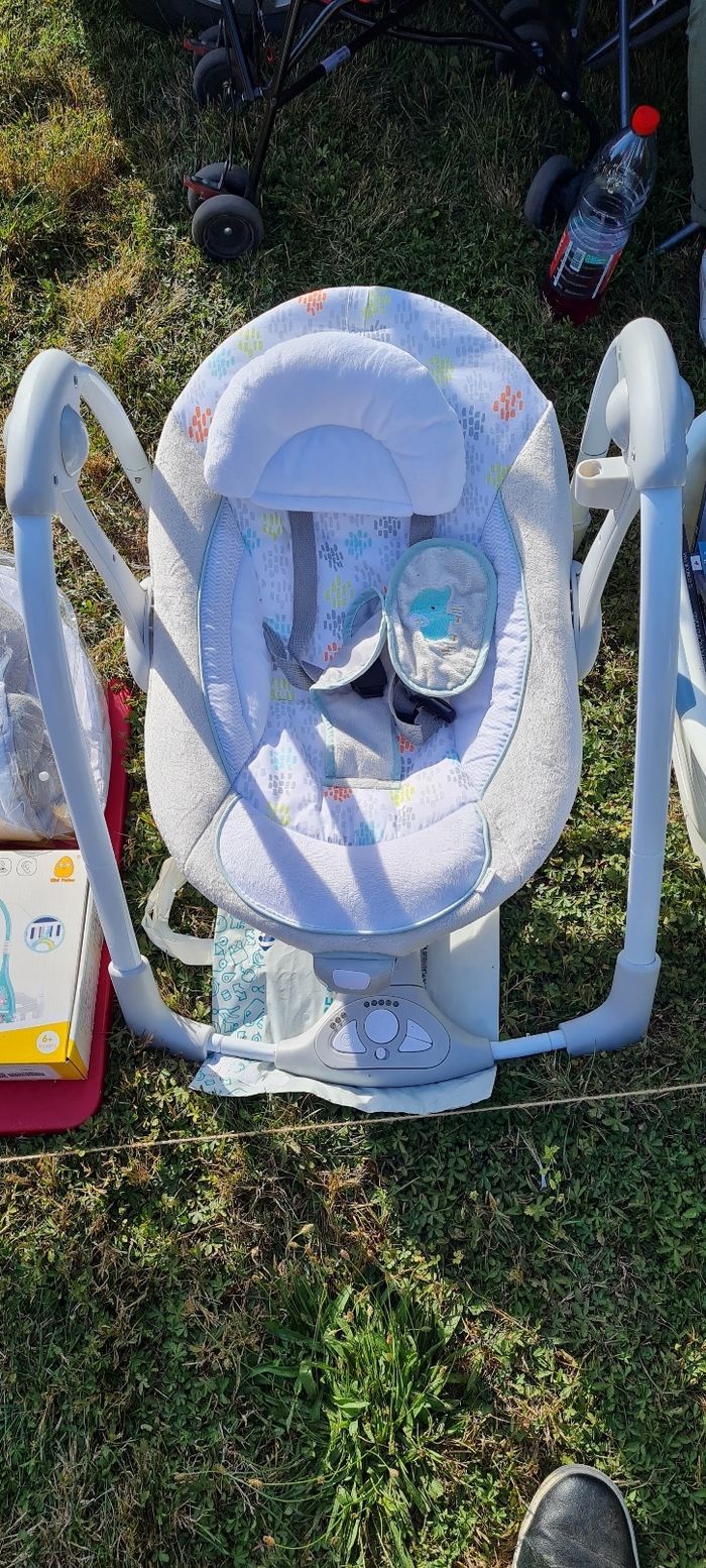 Balancelle qui fonction à la fois à pillé pratique pour déplace dans la maison Mais aussi sur secteur pour la laisse à la même place. Acheté à bébé confort valeur 120 euro