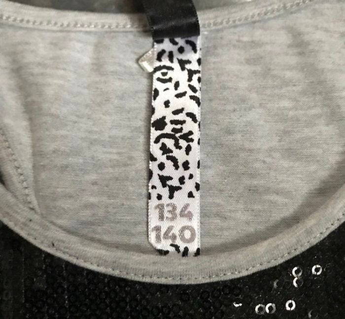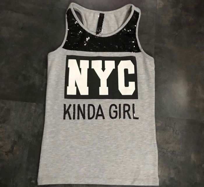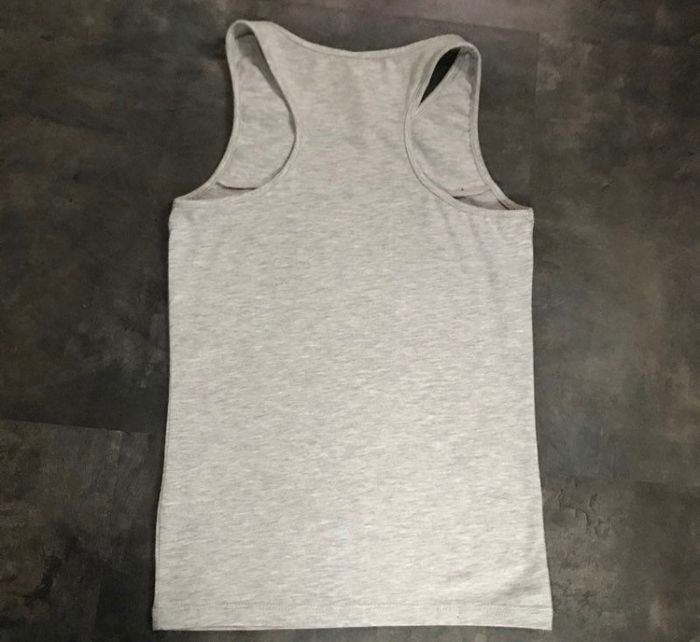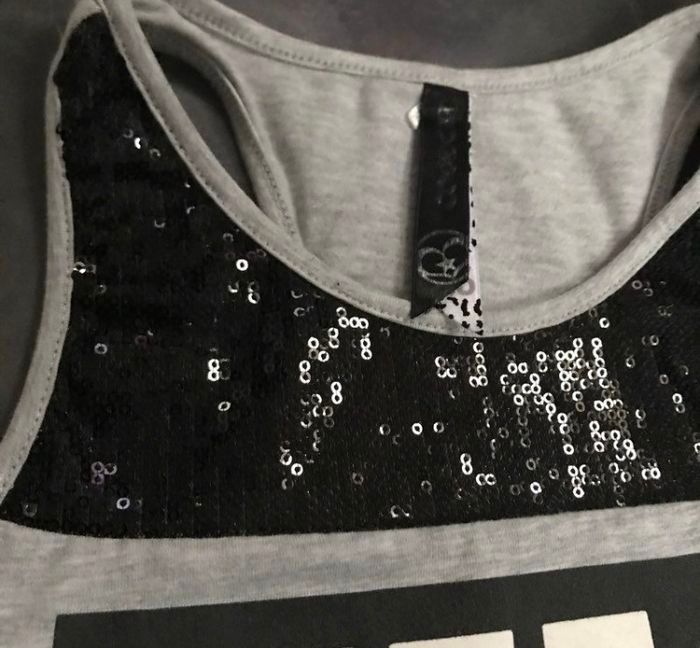 Débardeur gris et noir empiècement et broderie sequins serigraphié devant taille 9/10 ans 134/140 cm Coolcat