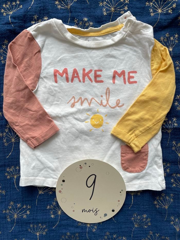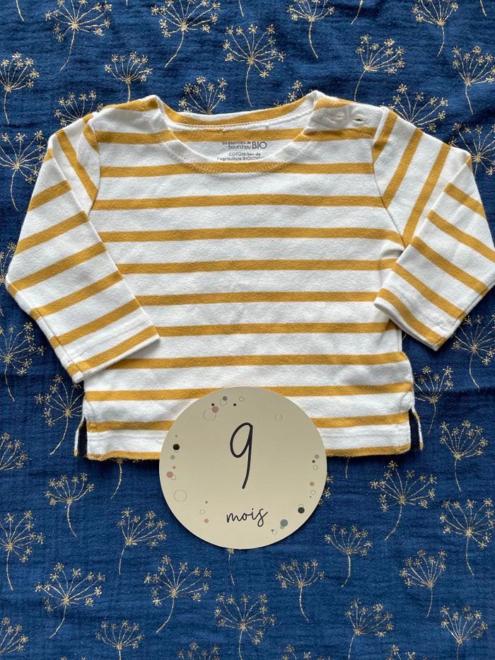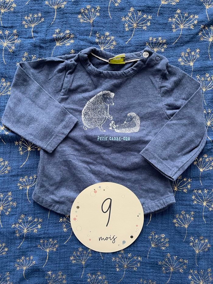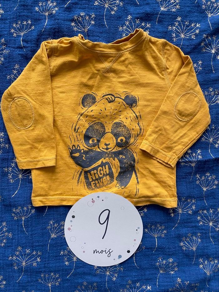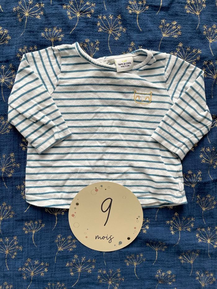 Lot de 8 tshirts manches longues 9 mois en très bon état Plusieurs marques : TAO, Boutchou, Kiabi, Tex