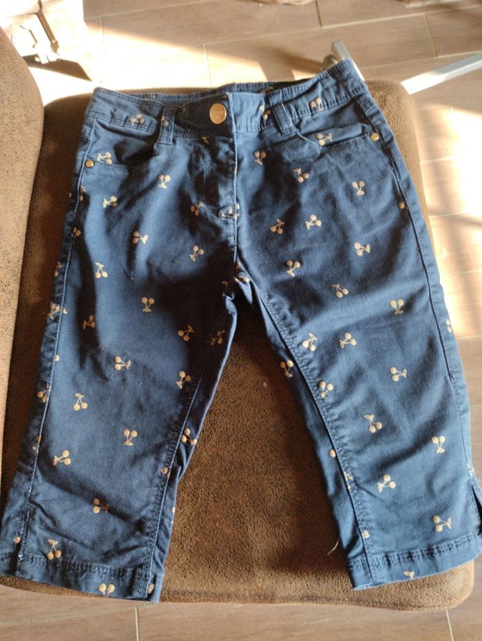 pantacourt Bleu marine avec des cerises doré excellent état marque orchestra taille 6 ans