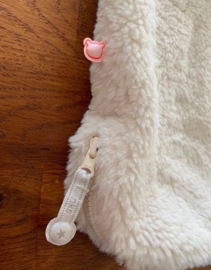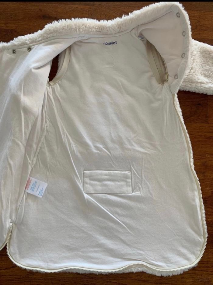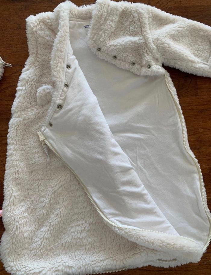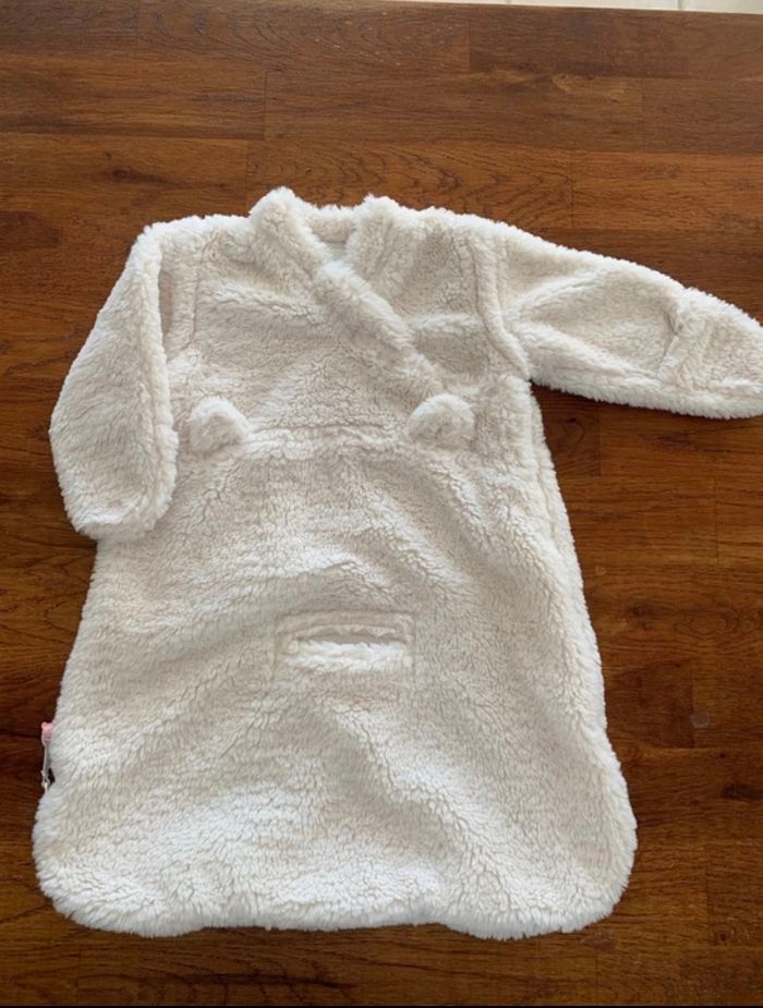 Gigoteuse 50 cm longs poils, blanc TOG 2.0-3.5 Age recommandé: 0 à 3 mois Certifié Oeko-TexConvient à des enfants taillant entre 50 et 62 cm Manches amovibles Marque Noukie's Comme neuve