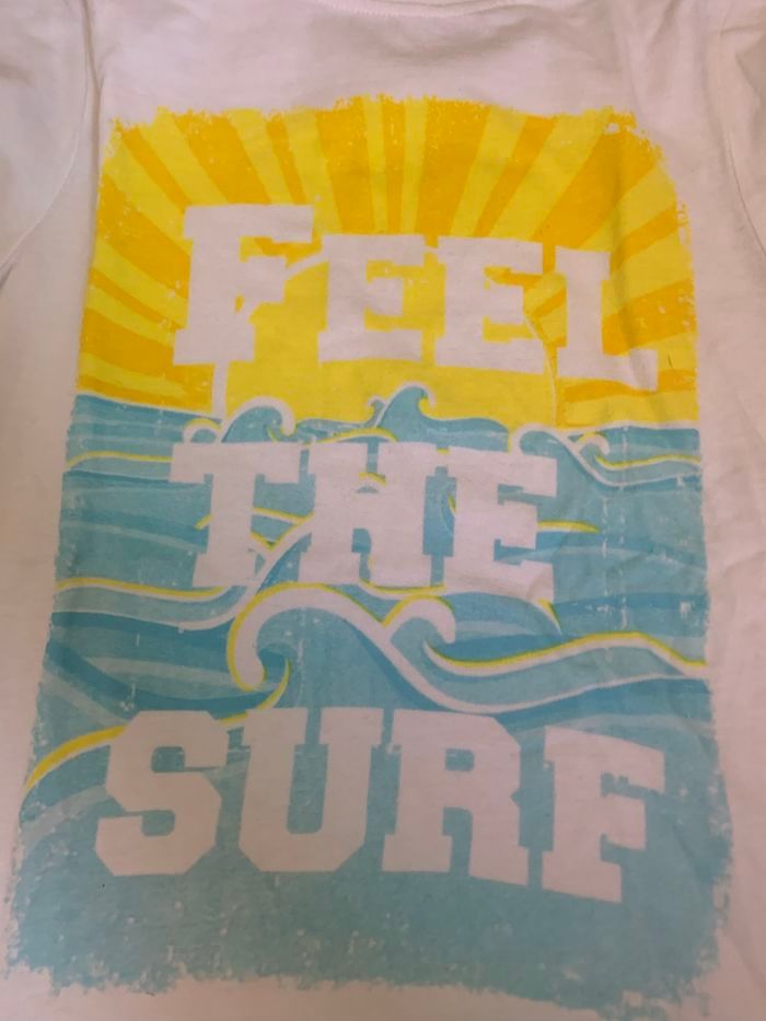 Teeshirt blanc avec écriture bleu et jaune Taille : 6 ans Très bonne état