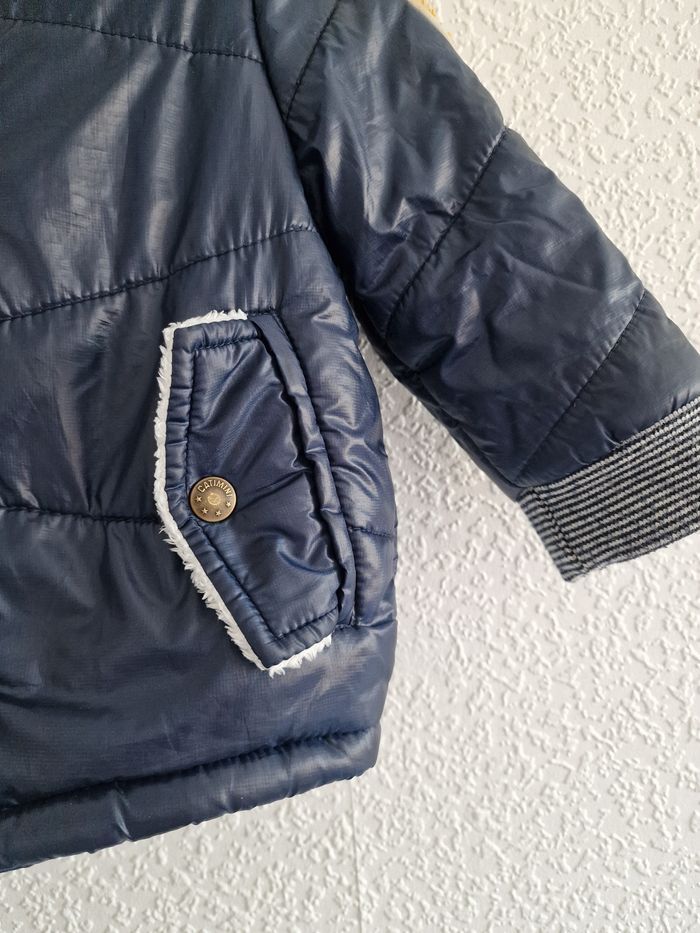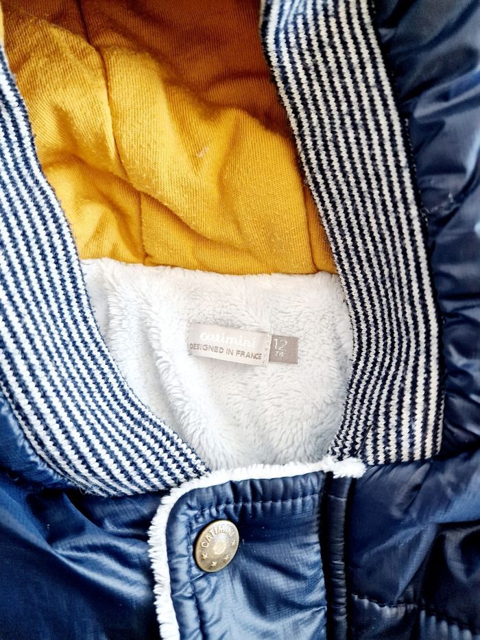 Tous mes articles Catimini : #catiminisev Toutes mes vestes : #vestesev Tous mes habits ♂️ 9 mois : #9moissevgarcon Tous mes habits ♂️ 12 mois : #12moissevgarcon Manteau / veste matelassée / doudoune avec capuche Marque : CATIMINI Couleur : bleu marine Taille : 12 mois - 74 cm État : très bon état Tissu principal : 100% polyester Fausse fourrure : 100% polyester Doublure capuche : 100% coton Doublure manche : 100% polyester Ouate : 100% polyester Prix d'achat : 89€ Retrait sur place ou envoi.