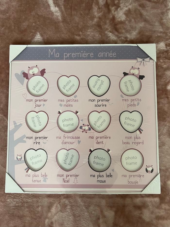 Cadre de photos pêle-mêle pour les 1ere fois de bébé. Neuf jamais utilisé, ne va pas avec la déco de la chambre.