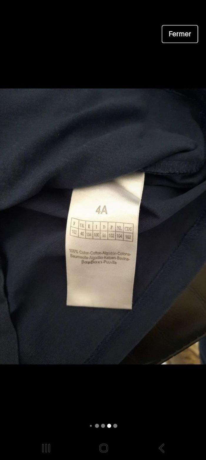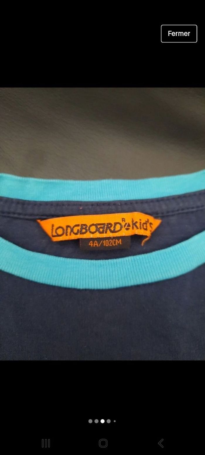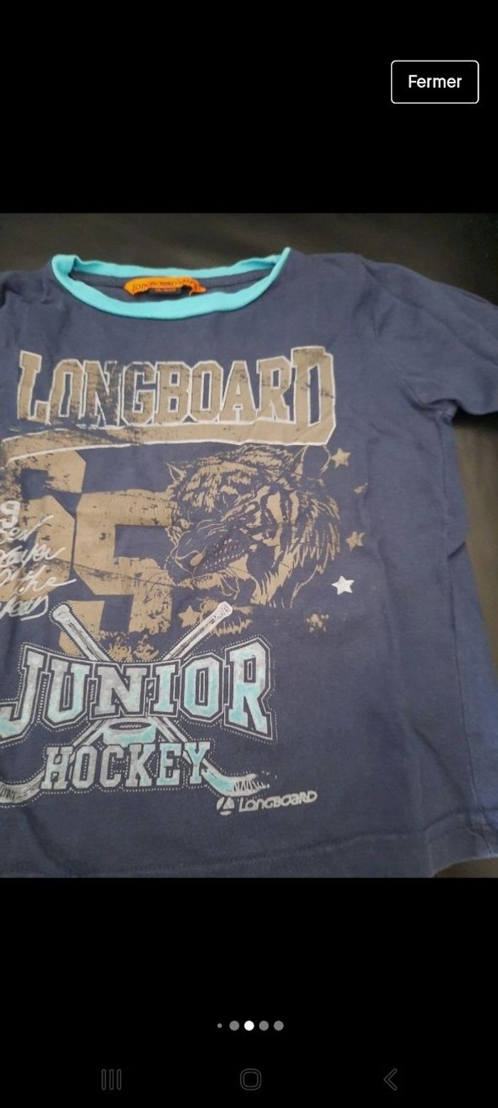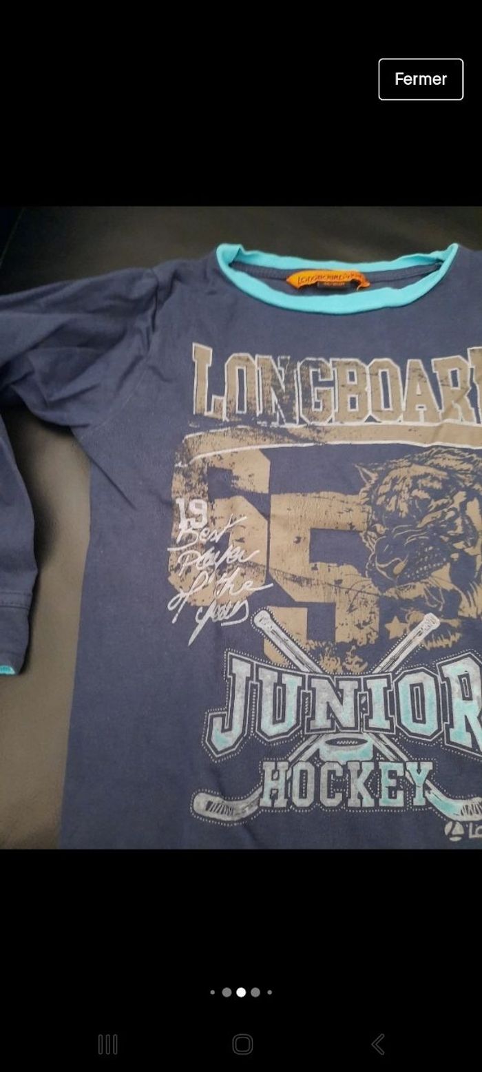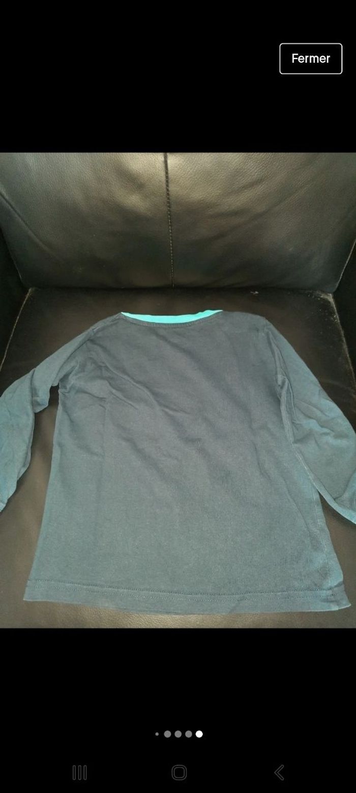 T shirt manches longues 4 ans /102 cm. Il y a un tout petit accroc à l arrière dans le bas du dos sinon très bon état .