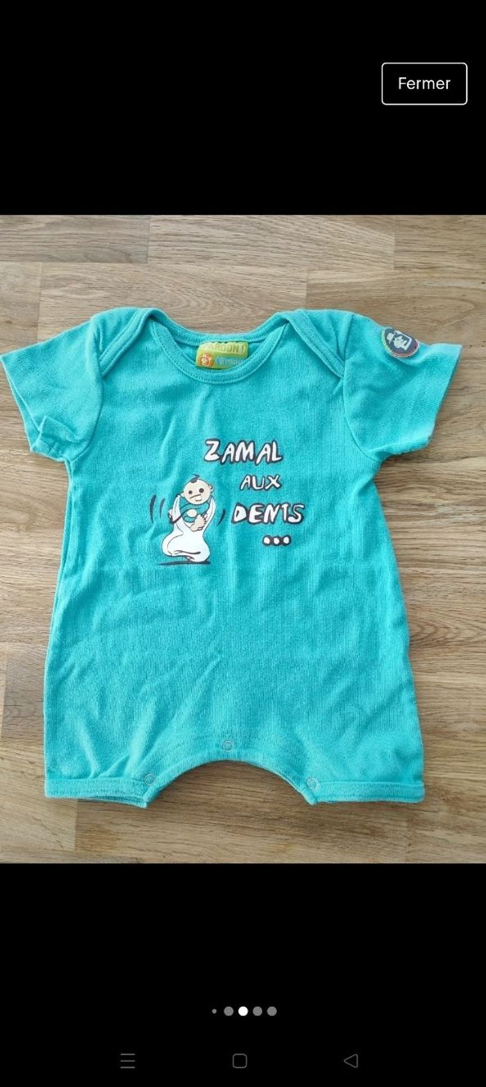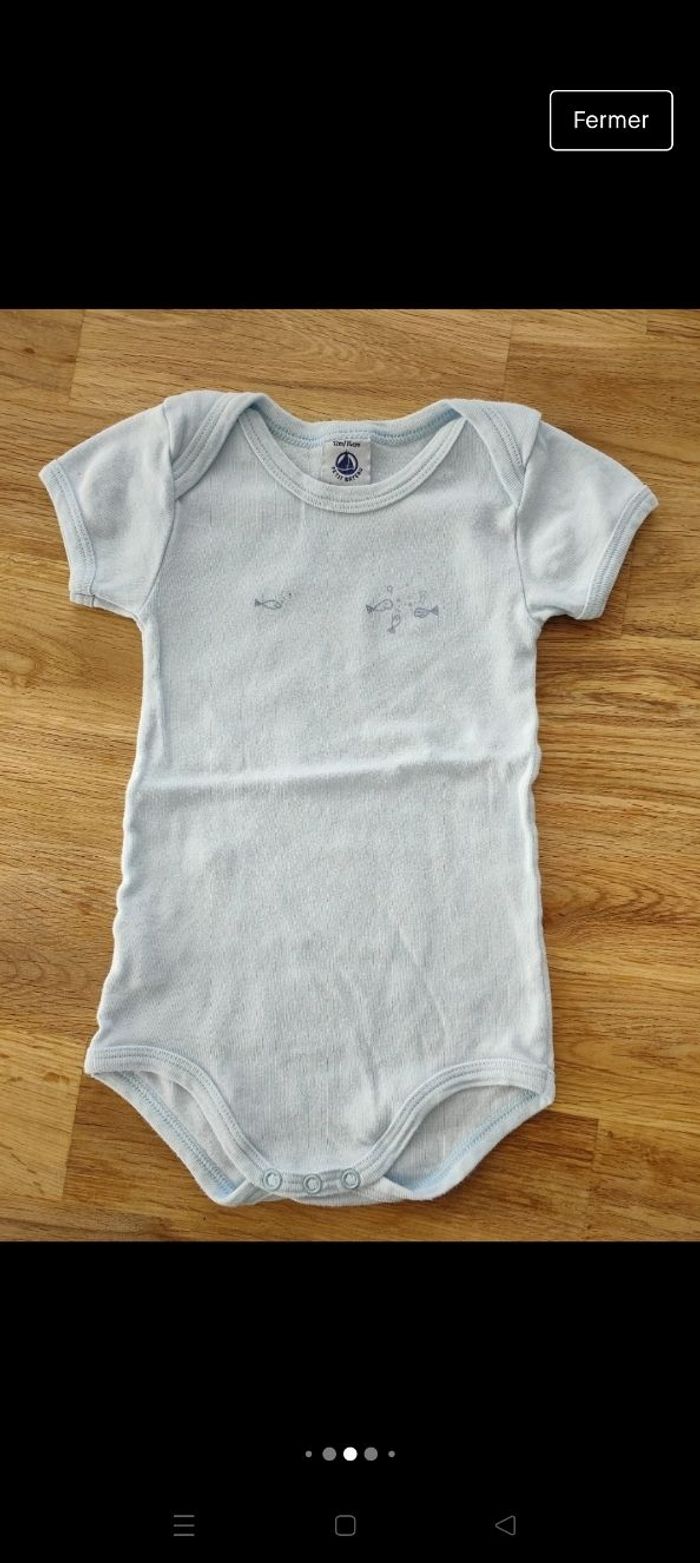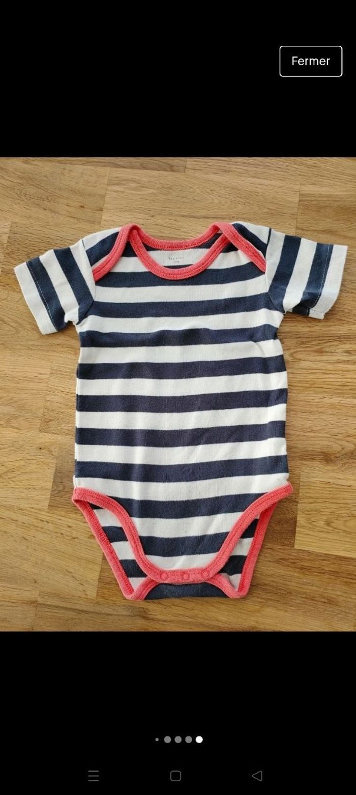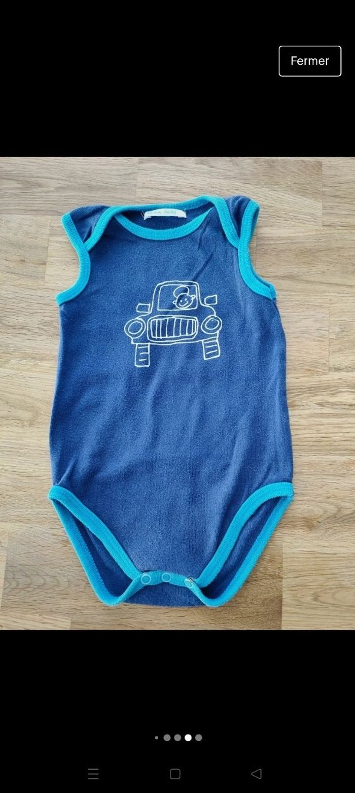 6 bodies (3 petit bateau, 1 pardon, 1 Hema, 1 tex) 2 t-shirts (1 baby Gap et 1 dpam) 1 polo obaibi 1 débardeur petit bateau Très bon état général Motifs un peu effacés sur certains articles