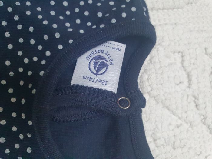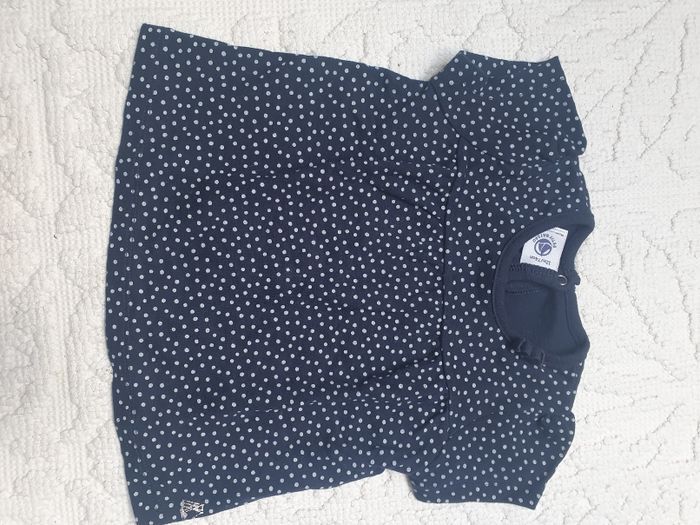 T shirt manches courtes bleu marine à pois 12 mois Excellent état