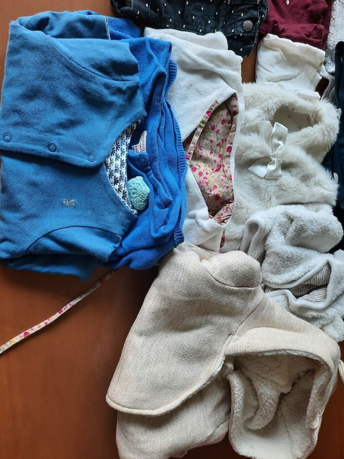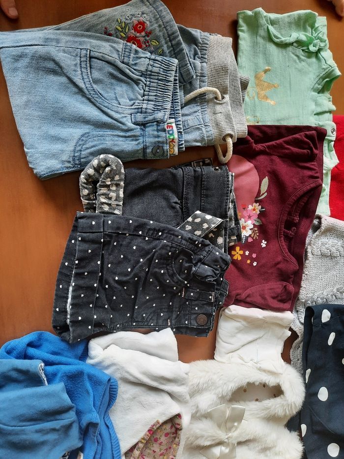 Lot bébé fille 3-6 mois très bon état et bon état 3 robes 2 t-shirts longues manches 5 pulls 2 shorts 2 pantalons 1 paire de collants