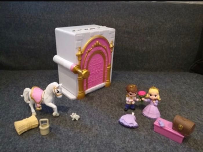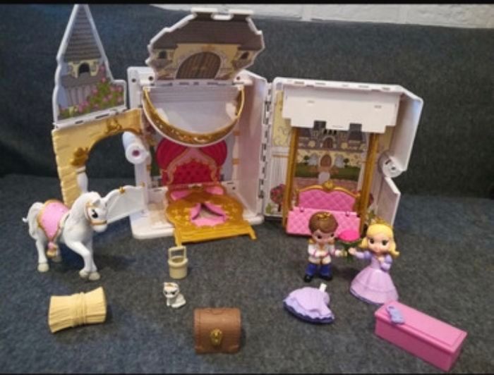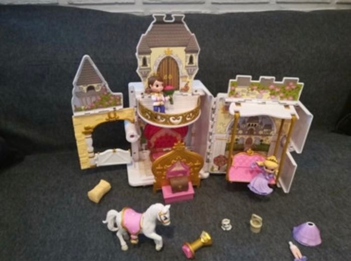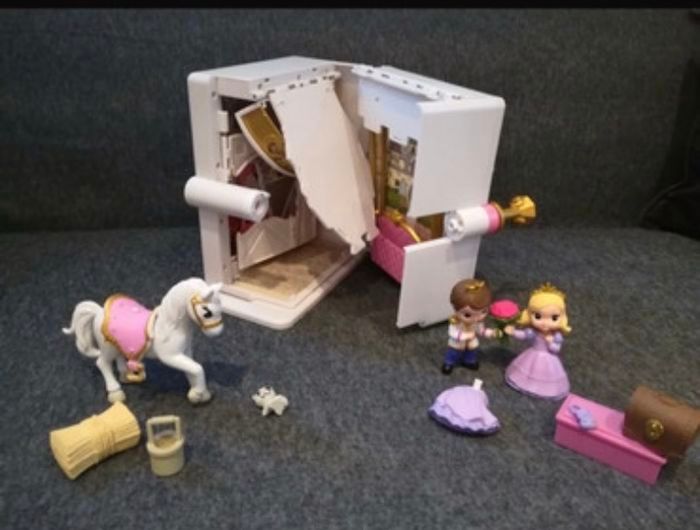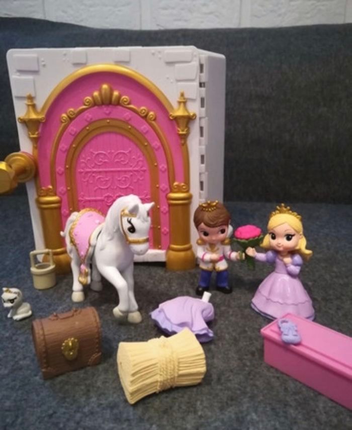 Adorable château magique à emporter partout ! Princesse et son prince, cheval et tout les accessoires 😊 Dimensions 16,5 X 11 X 5,5 cm