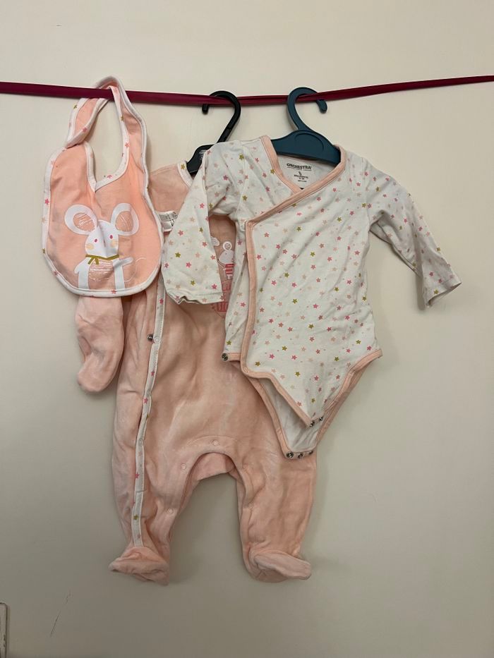 Adorable ensemble assorti Pyjama velours + body + bavette Comme neufs 💕