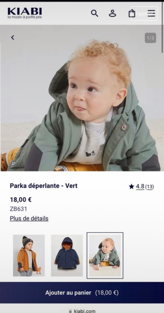 Parka manteau Bébé 3 mois Kiabi Jamais porté