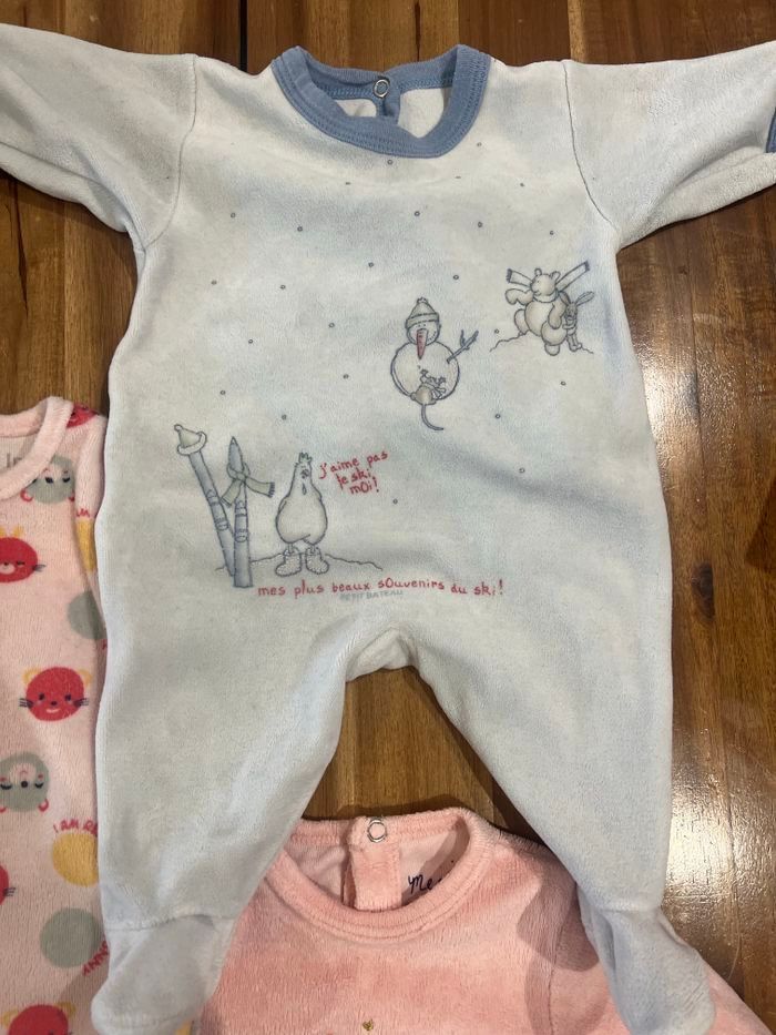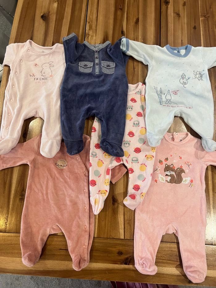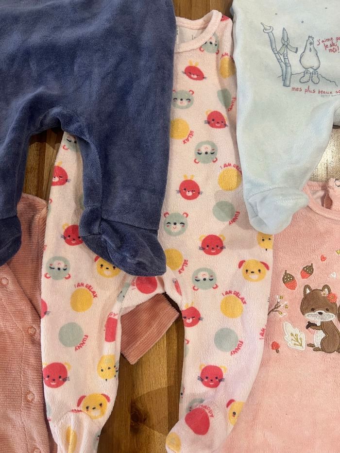 A vendre Lot de pyjamas en velours taille 1 mois Multi marques kiabi, la redoute, petit bateau Très bon état Envoyés lavés et dans un carton