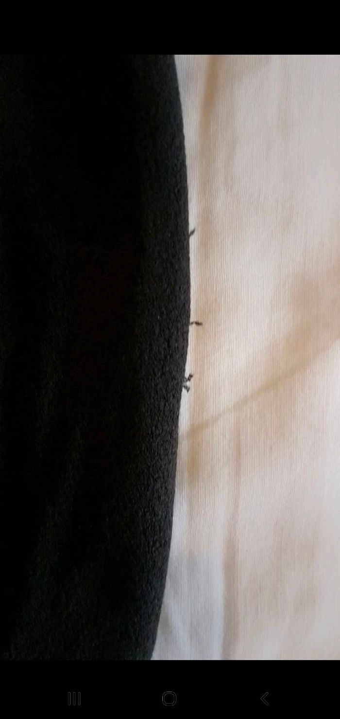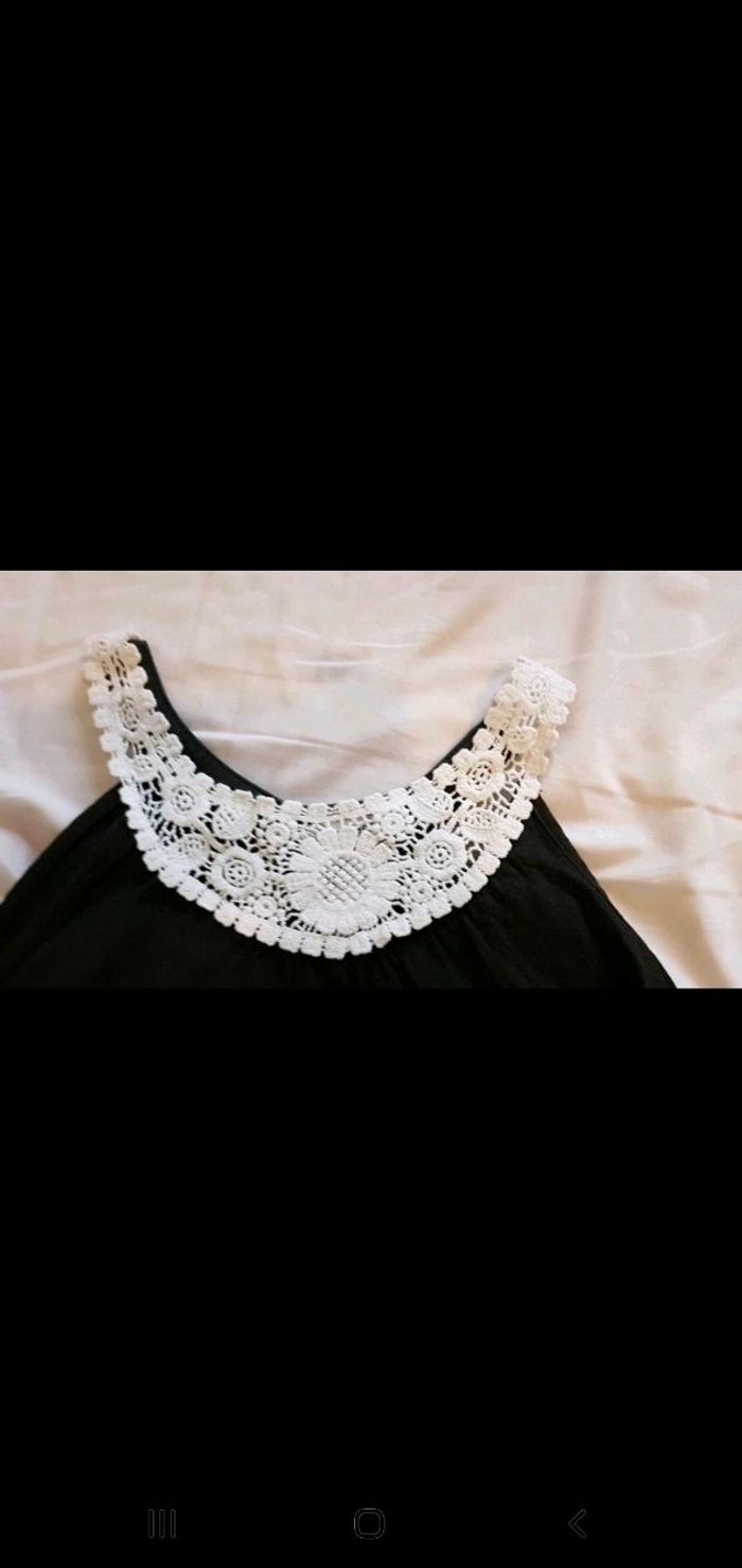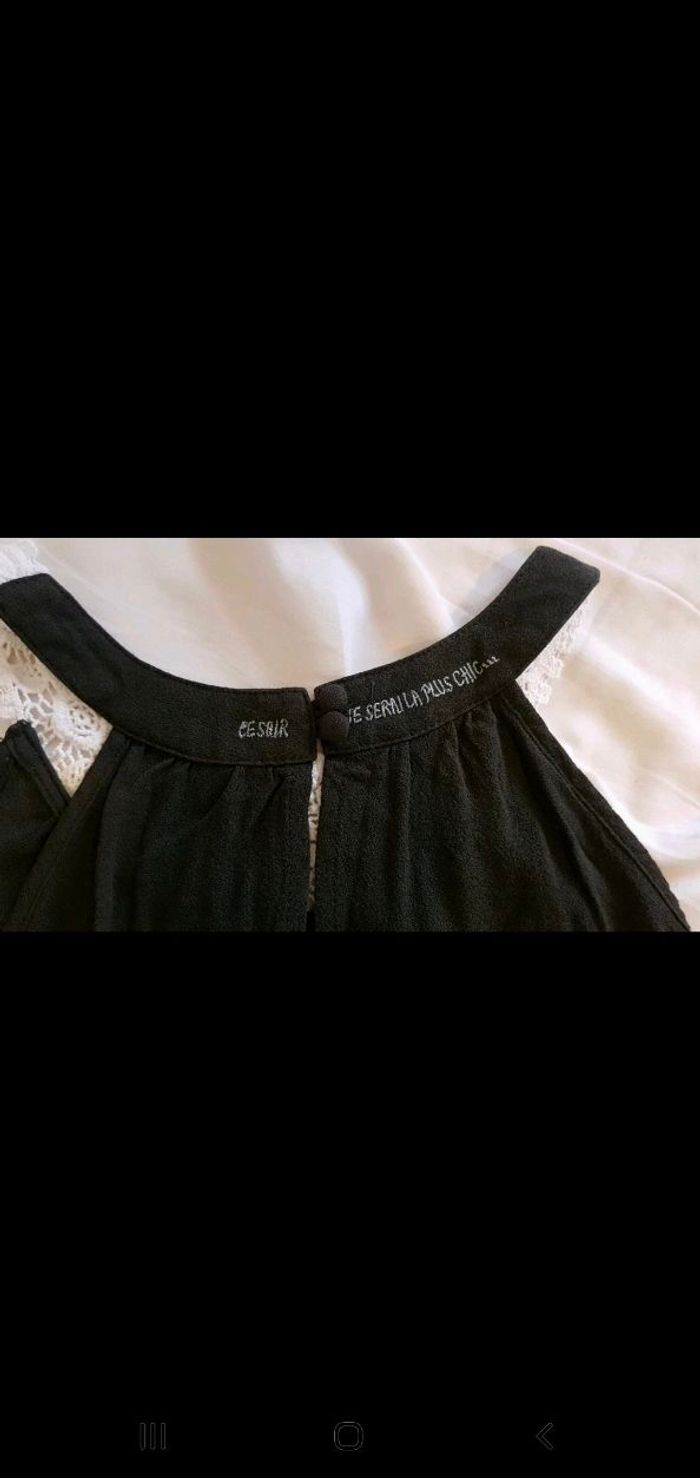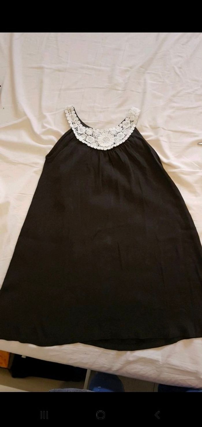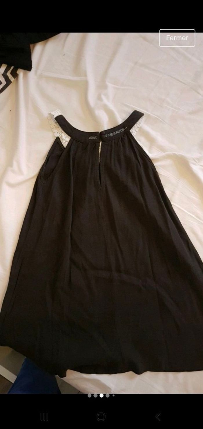 Robe fluide avec col en dentelle et inscription sur l'arrière du col. Quelques fils ont été tirés ( voir derniere photo). Grise foncée
