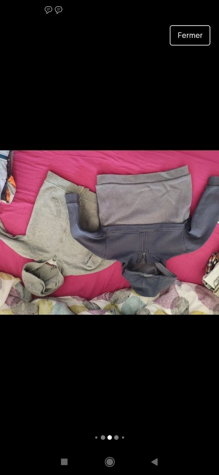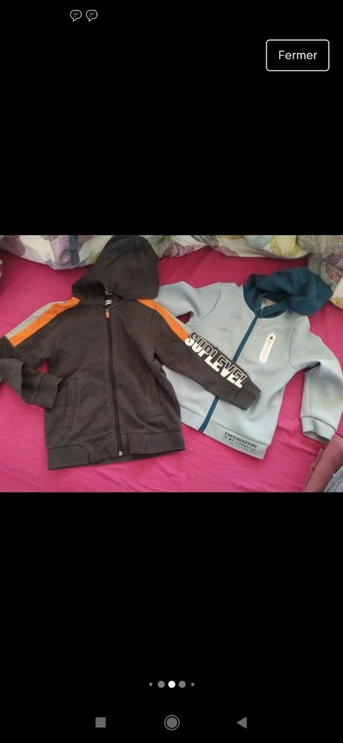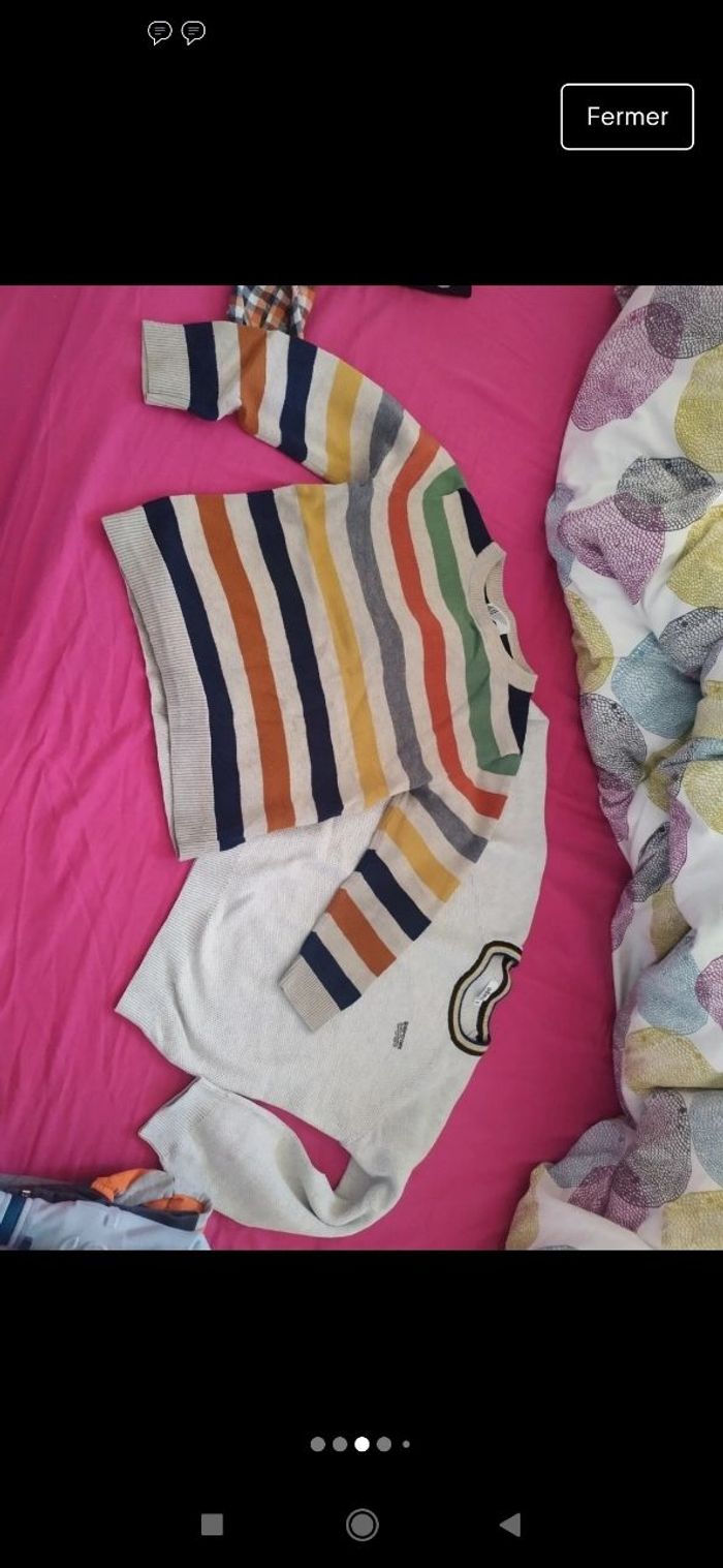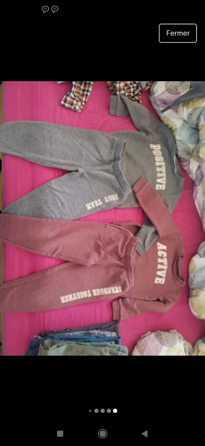 Lot vêtement taille 6 en bon état. Non taché et non troué. 6 pantalons, 9 pulls, je donne également lot de t-shirt. Multi marque