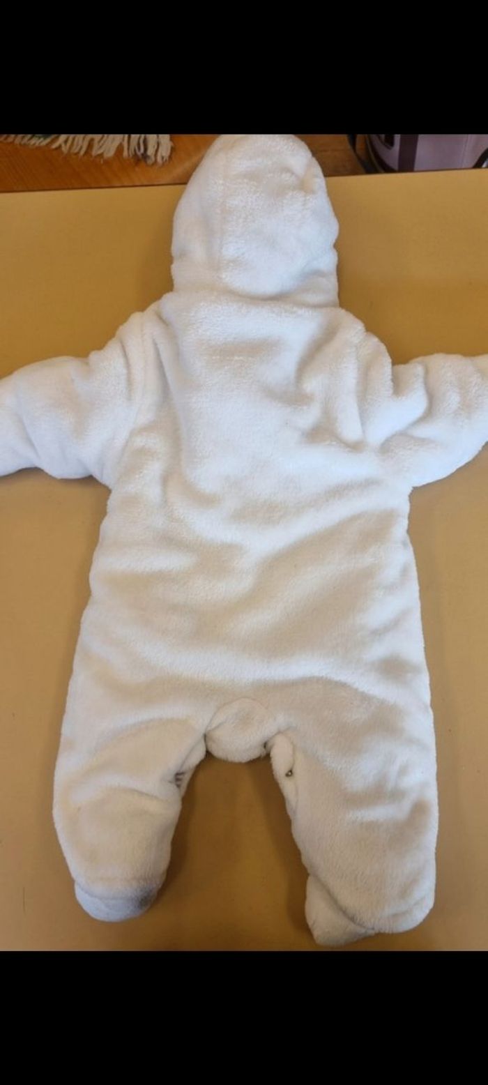 Je vends une combinaison blanche molletonnée taille 3-6 mois. Marque Obaibi. Quasiment jamais mise.