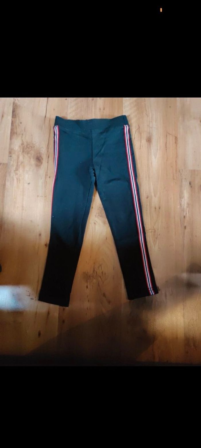 Jegging noir avec bandes rouges et blanches sur le côté. Taille 6 ans.