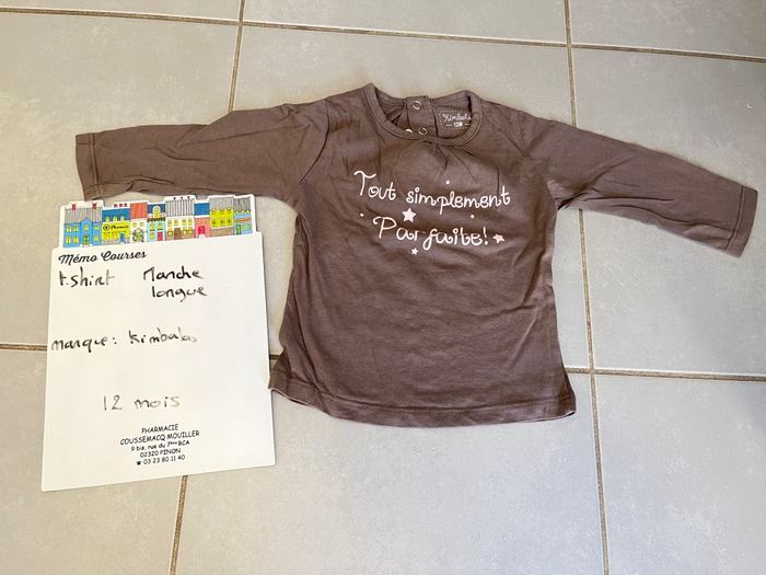 T shirt manche longue fille de taille 12 mois et de marque kimbaloo en très bon état