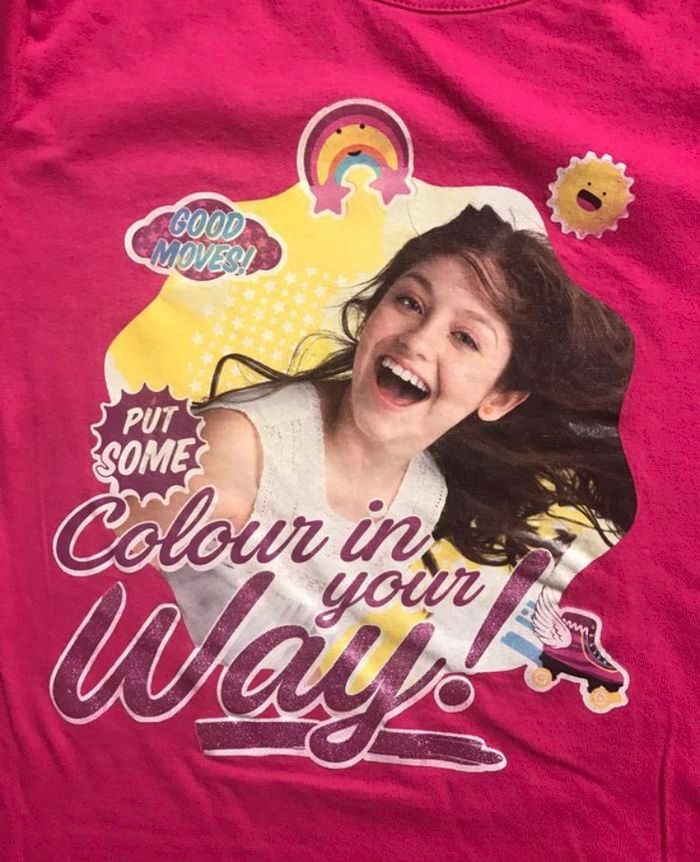 Pour être assortie aux rollers, Vends ce t-shirt manches courtes rose fuschia sérigraphie SOY LUNA. DISNEY Taille 10 Ans Etat impeccable