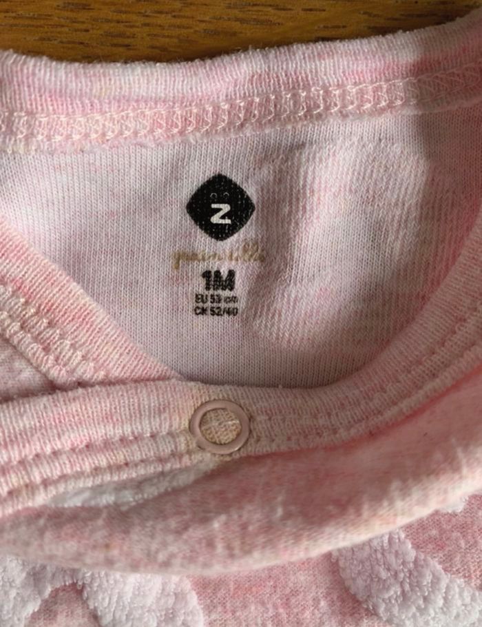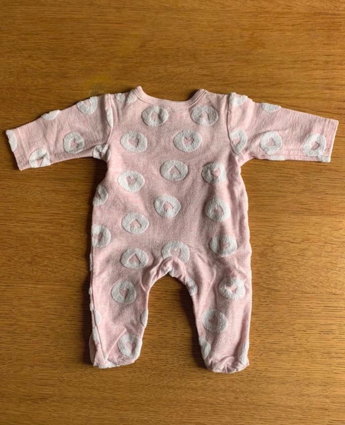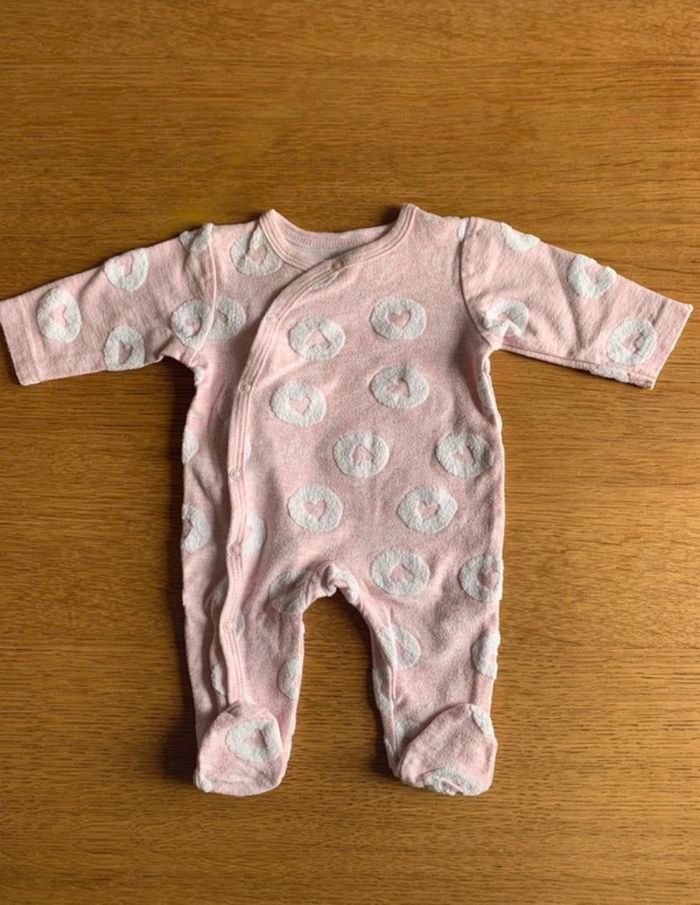 pyjama couleur rose, avec ouverture avec des pressions sur le devant. motif cœur. taille 1 mois marque z and co