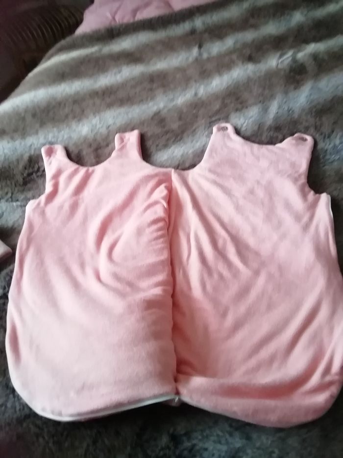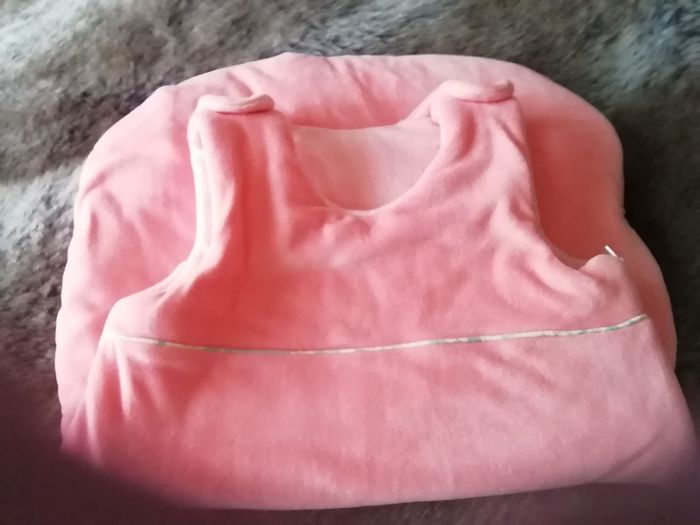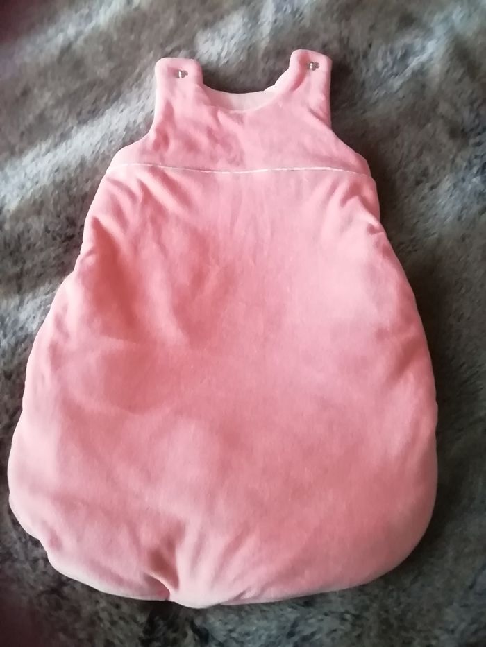 Réalisée en velours interieur/exterieur de couleur saumon. J'ai doublé le ouatinage pour plus de chaleur. Taille 1 an à 18 mois (selon taille bébé)