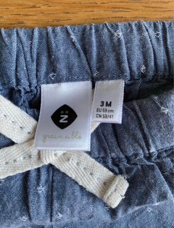 pantalon/sarouel bleu (mixte) taille 3 mois marque grain de blé