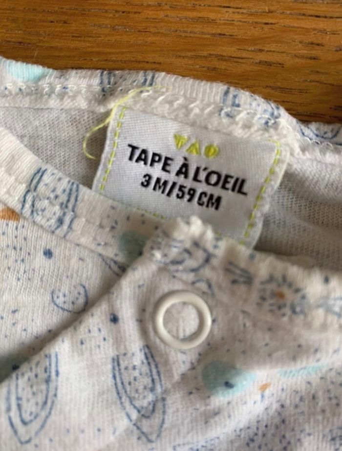 pyjama fin blanc motif lapin bleu mixte taille 3 mois marque tape à l’œil Très bon état