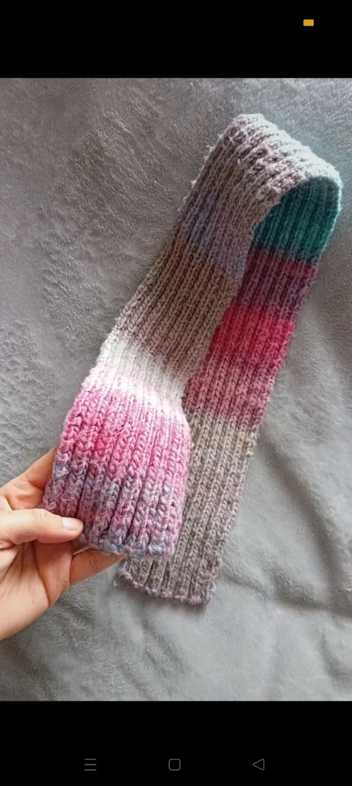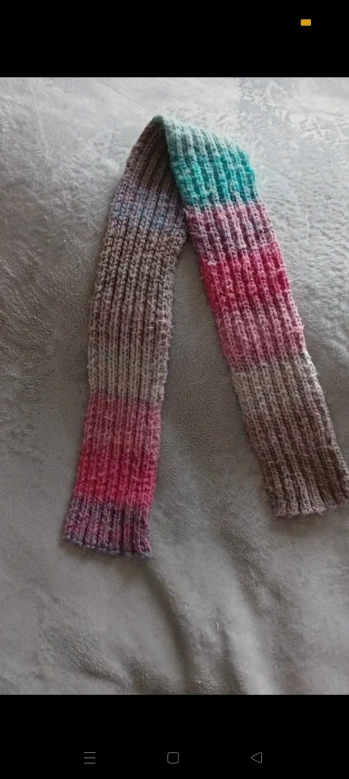 Écharpe en laine coloré fais à la main d'environ 80 cm de longueur et 10 de largueur
