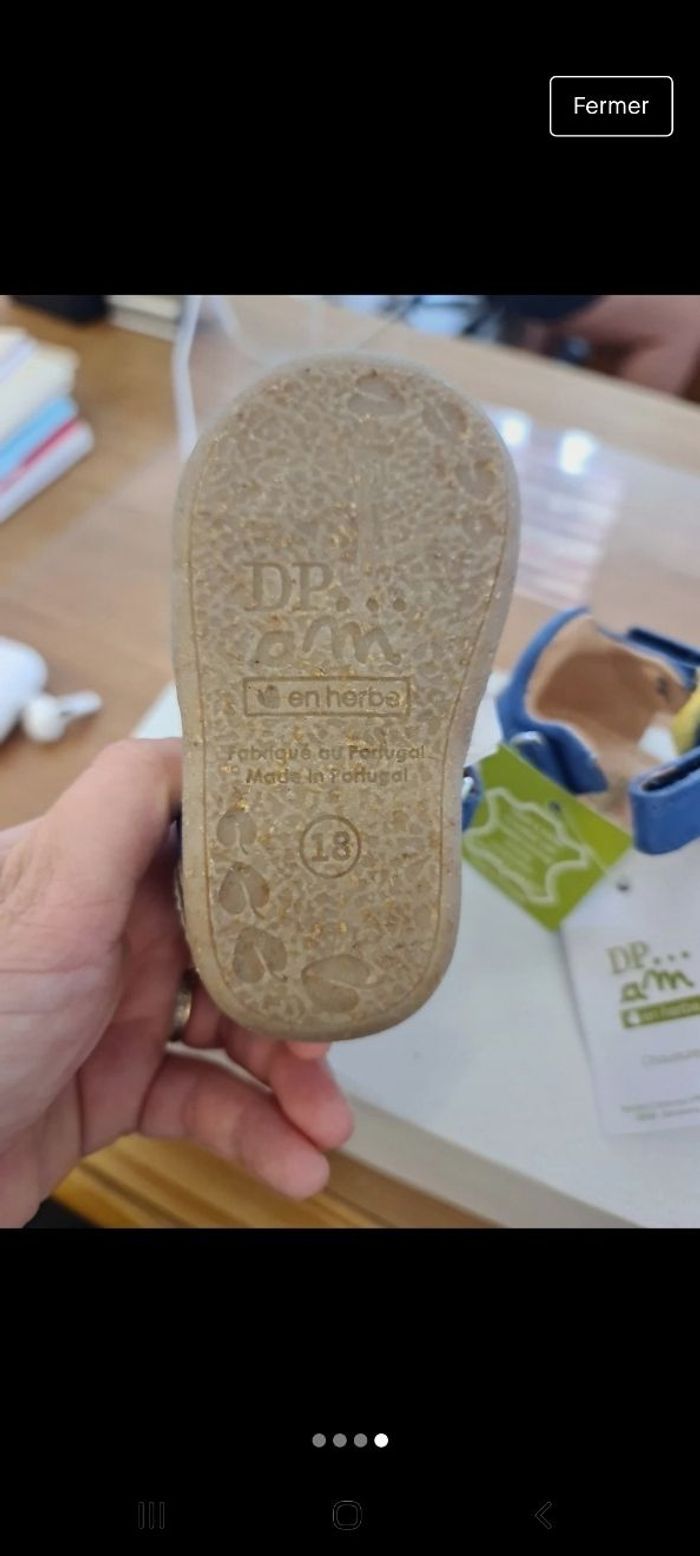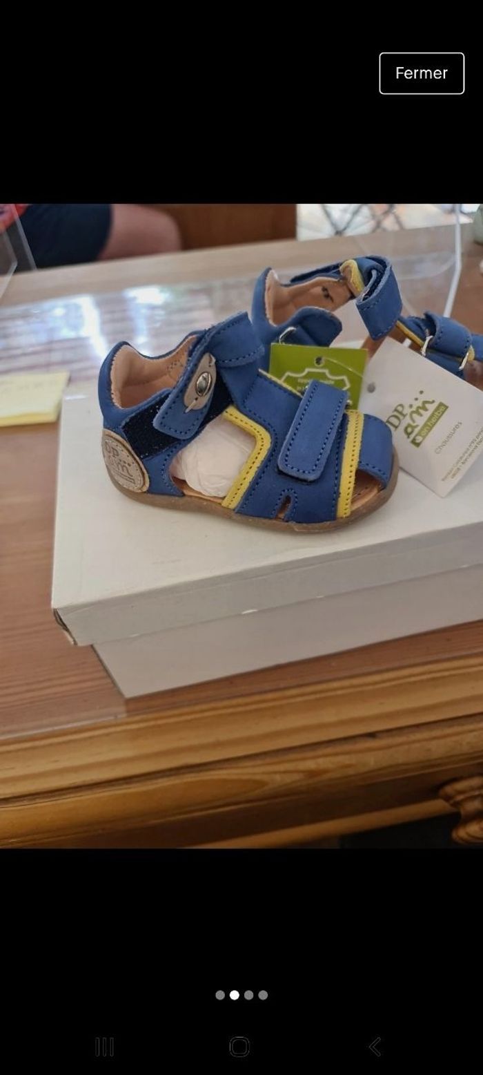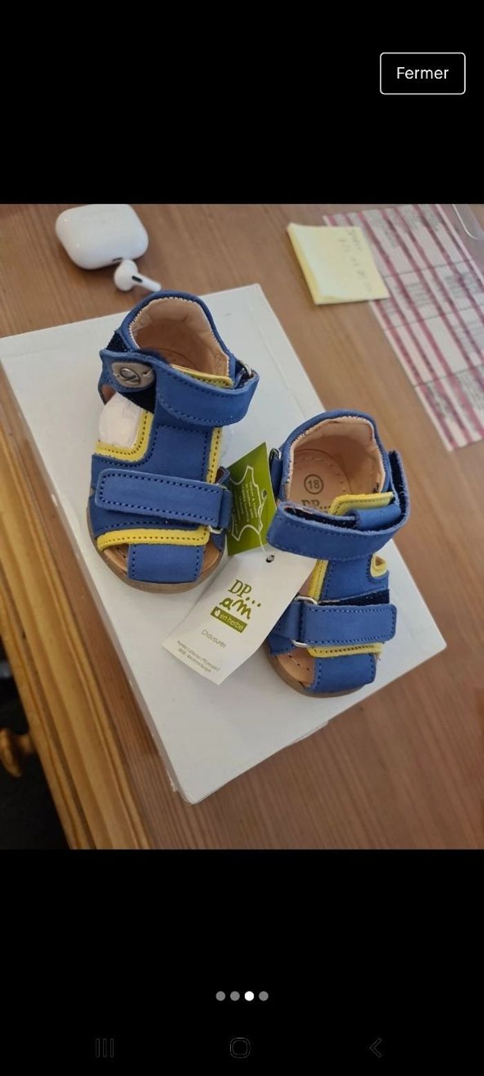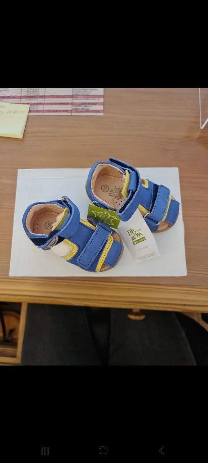 Chaussure ouverte bleue et jaune. Taille 18 Neuf