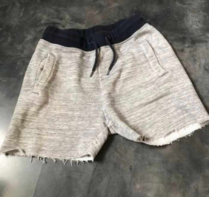 Short détente gris chiné, ceinture bleu marine avec cordon de serrage, 2 vraies poches devant, fausse derrière taille 10-12 ans 146 cm H&M (pantalon coupé)