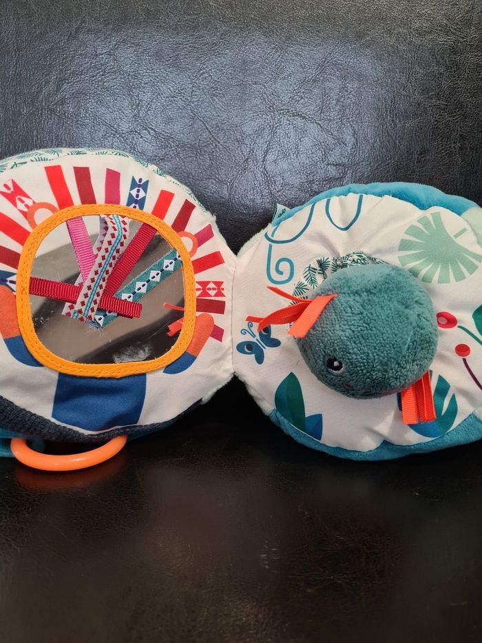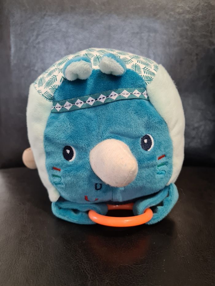 Marius le rhino est un véritable défi pour les petits curieux. Couleurs, sons, matières et activités stimulent les sens. Appuyez sur son nez et il grognera de plaisir. Peu à peu des liens sont établis entre actions et réactions. Un jouet d’activités très complet qui accompagnera votre enfant tout au long de son développement. Valeur magasin environ 30 euros