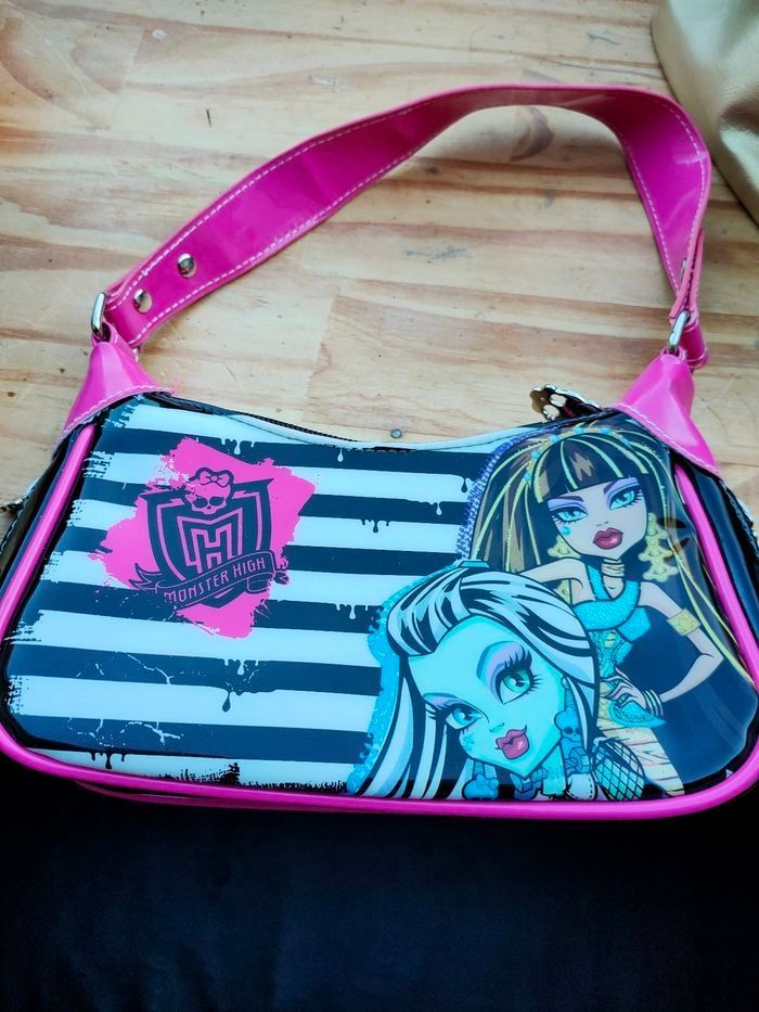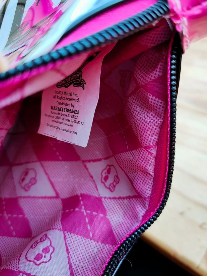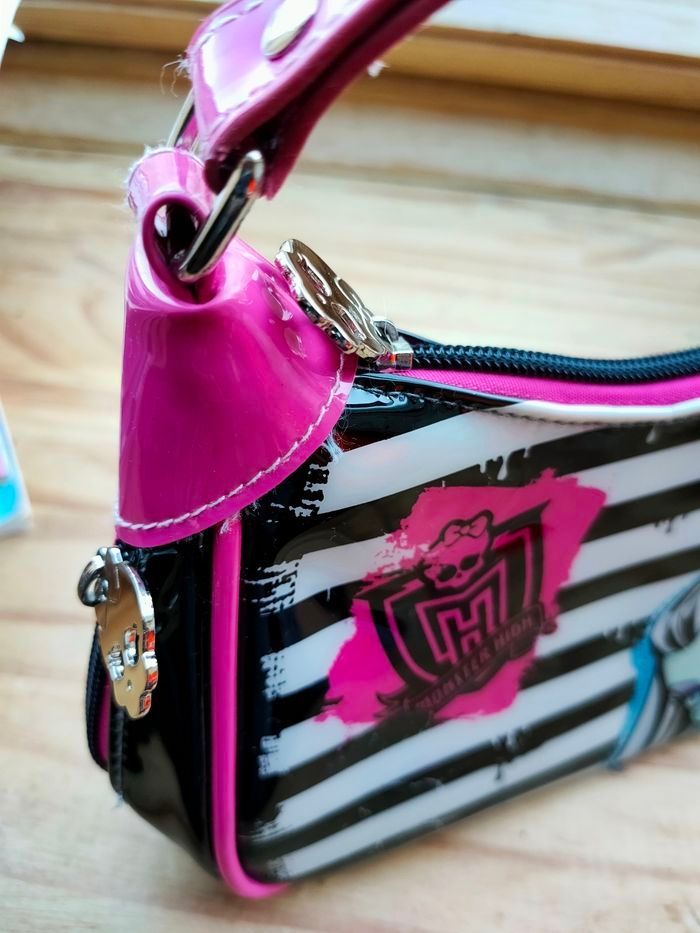 Petit sac, plusieurs pochettes intérieur, fermeture éclair, rose, noir, blanc,