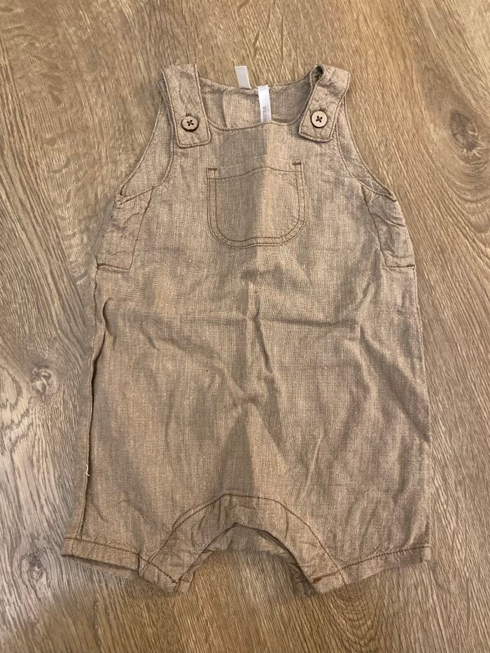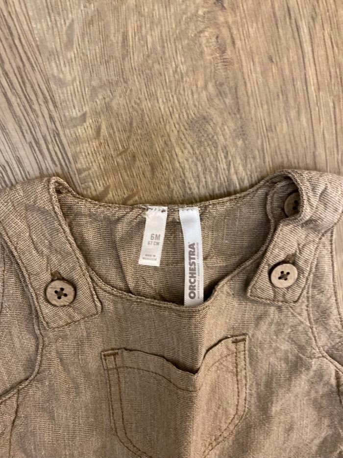 Jolie salopette beige/marron en lin de marque orchestra et de taille 6 mois