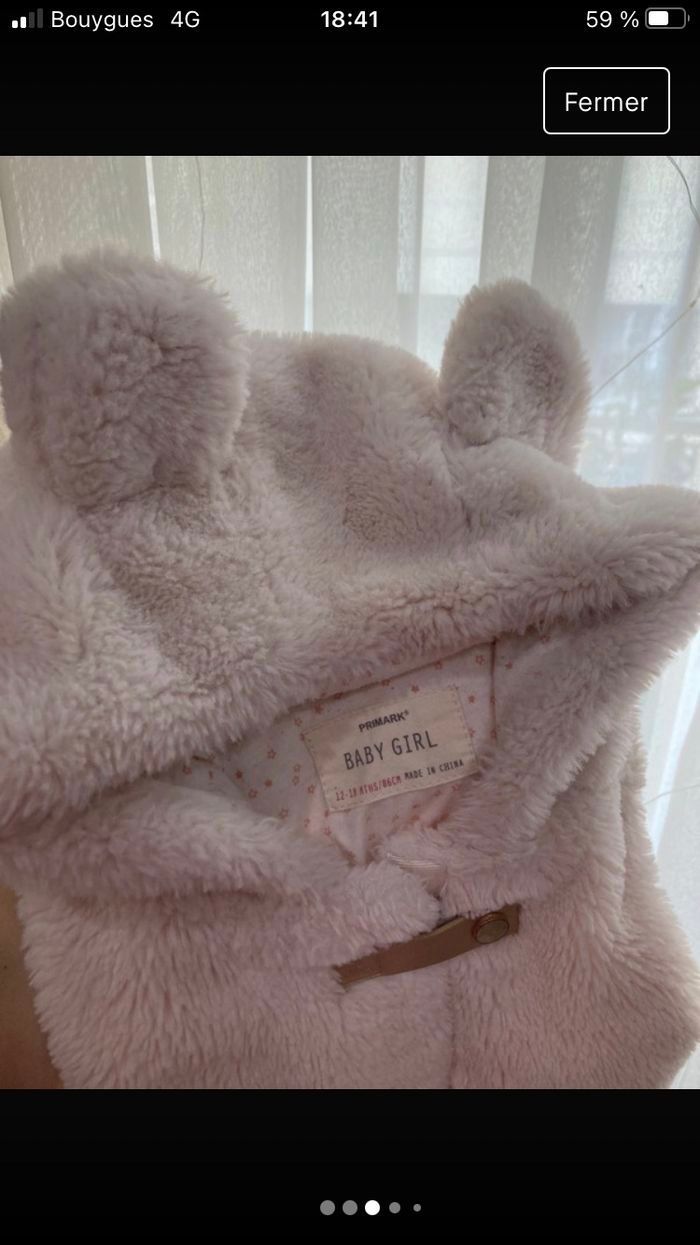 Adorable fausse fourrure, très douce, en très bon état , avec une super coupe qui est bien de 12 mois jusqu’à 3 ans