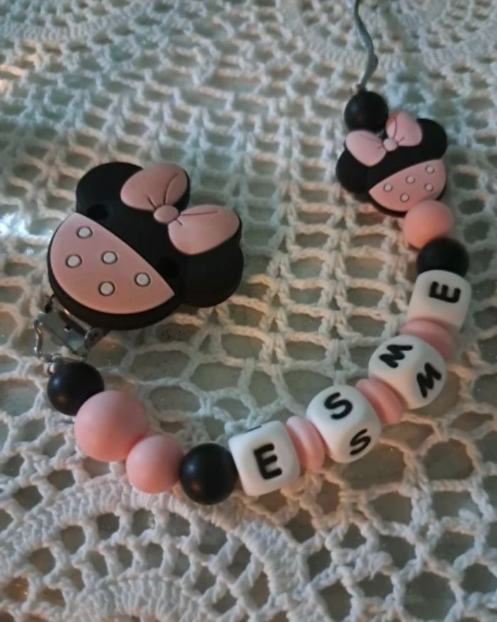 Attache tétine personnalisé en silicone ou en bois au souhait de l’acheteur . Personnalisable au choix de l’acheteur que ce soit la couleur comme le prénom ou le thème . Le fil est doublé pour plus de sécurité tout le long de l’attache tétine. N’hésitez pas à me demander et regarder mon dressing. Une photo vous sera envoyée avant l’expédition pour vous ayez un aperçu du rendu. Tous les produits sont réalisés avec du materiel spécial conçu aux bébés , enfants.