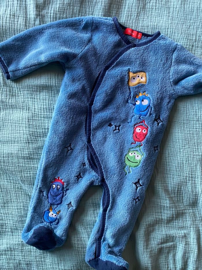 Pyjama chaud très bon état très peu porté ouverture ventrale avec boutons pression Taille 6 mois