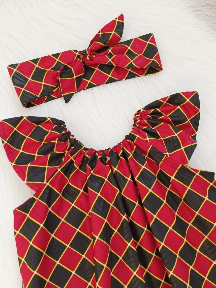 Bébé Body Manches Évasées Avec Bandeau en Tissu Wax - photo numéro 1