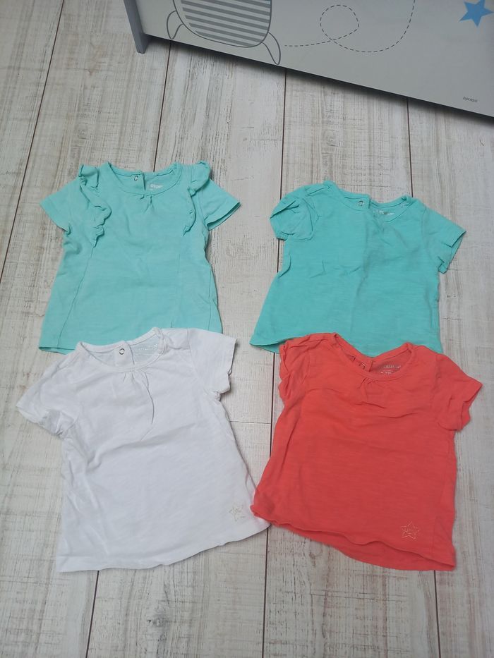 Hauts manches courtes orchestra 9 mois en très bon état 2 verts d'eau un blanc et un corail