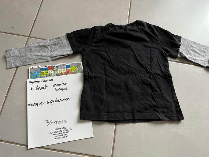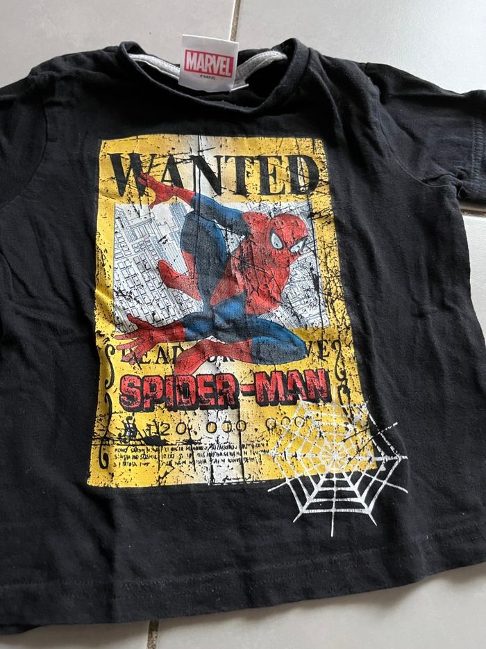 T shirt manche longue garçon de taille 3 ans et de marque spiderman en très bon état (le dessin n’est pas craquelé, il est d’origine comme ça)