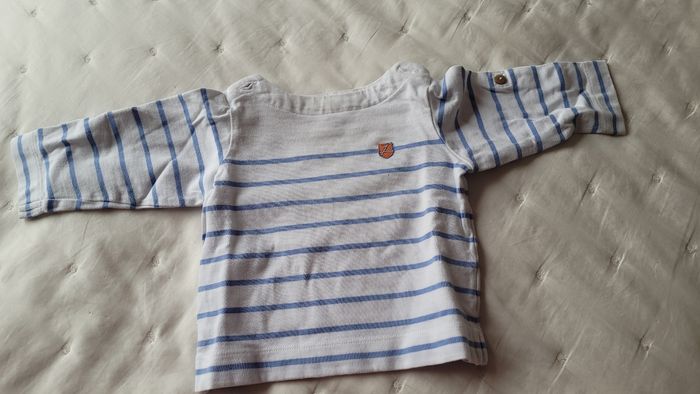 Tee shirt manches longues blanc et et bleu à rayures. Coton epais 12 mois En parfait état